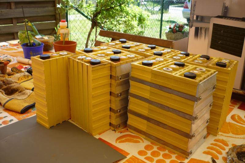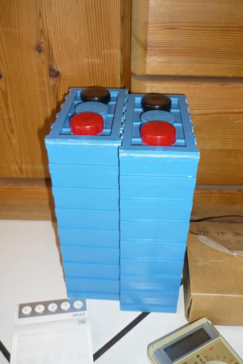 Dabei sind Papas Zellen, 2 neue Calbs, die meine beiden schlechten Calbs ersetzen sollen. Gut: die Zellpole sind ab Lieferung mit Abdeckungen versehen, es wäre schön, wenn sich Thundersky mal ein Beispiel daran nehmen würde.