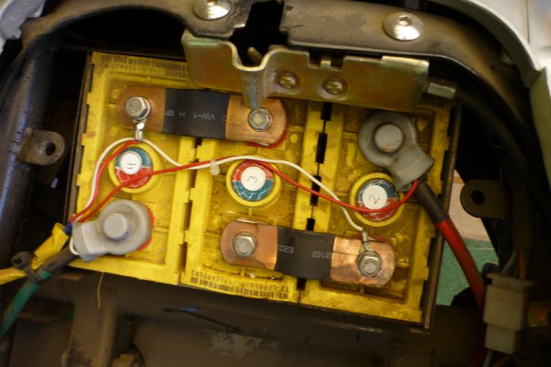 Parallel geht es jetzt an den Roller. Zunächst mal eine Fotodoku, damit man im Vergeßlichkeitsfall nochmals nachschlagen kann, wie die Verkabelungen liefen.