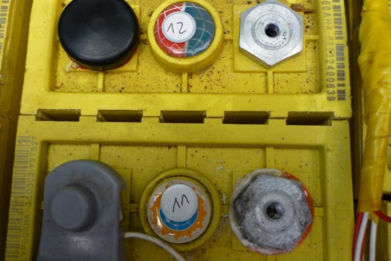 Zelle 12 wird nachgefüttert, und die hochohmig erscheinende Zelle wird nochmals überprüft. Sie ist äußerlich intakt und wird als Reservezelle erst einmal nicht entsorgt.