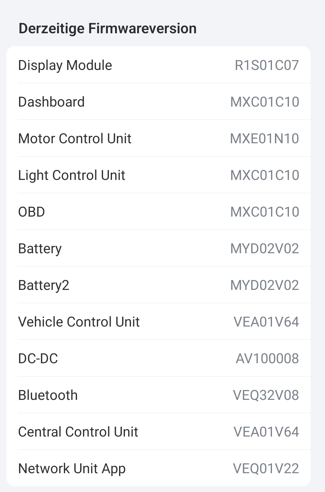 Mnu hat geschrieben: Mo 9. Okt 2023, 12:59 Mein eigentliches Problem ist jetzt: Ich bekomme vom Händler nur BMS V04 Kein V05 und erst recht kein V06 auch in der App wird mir nichts angezeigt. Kann ich dem Händler irgendwie einen Tipp geben oder so wo er die Updates finden kann? oder ist es bei NIU üblich, unterschiedliche Softwarestände zu verteilen? Ich dachte ich kann beim Händler alles mal mit zwang "Hochziehen". Er bezieht die Dateien übrigens bei KSR, gibt es vielleicht bei NIU direkt Händleraccounts oder so?