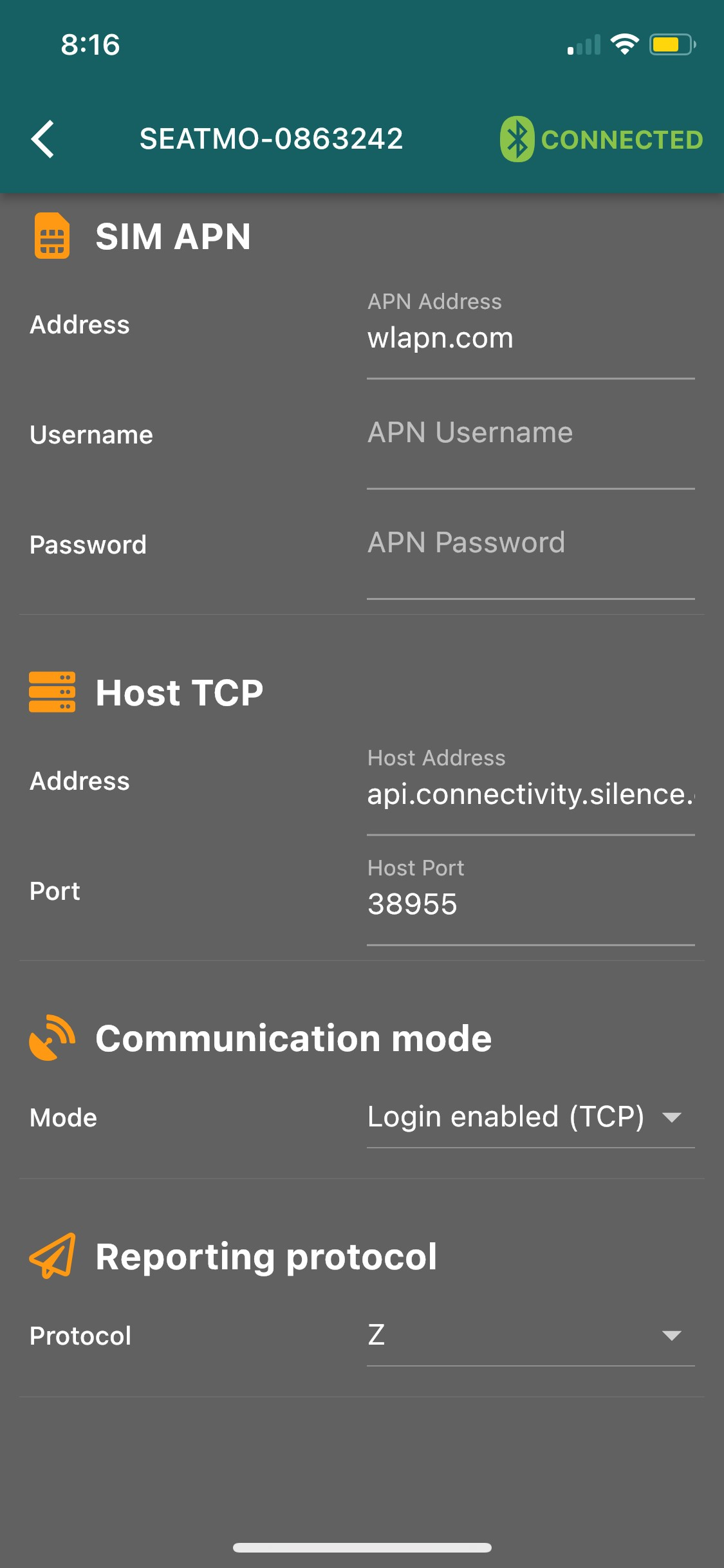 Ich bin vielleicht außerhalb des Themas, aber ich verwende die Originalanwendung "astra IoT", um mit dem Astra-Modul zu kommunizieren. Ich habe ihnen eine E-Mail mit der IMEI des Moduls geschickt und sie geben mir ein Konto, das ich in der Anwendung verwenden kann, um mit meinem Roller zu kommunizieren und Befehle über Bluetooth zu senden. Ich füge einige Screenshots bei.
