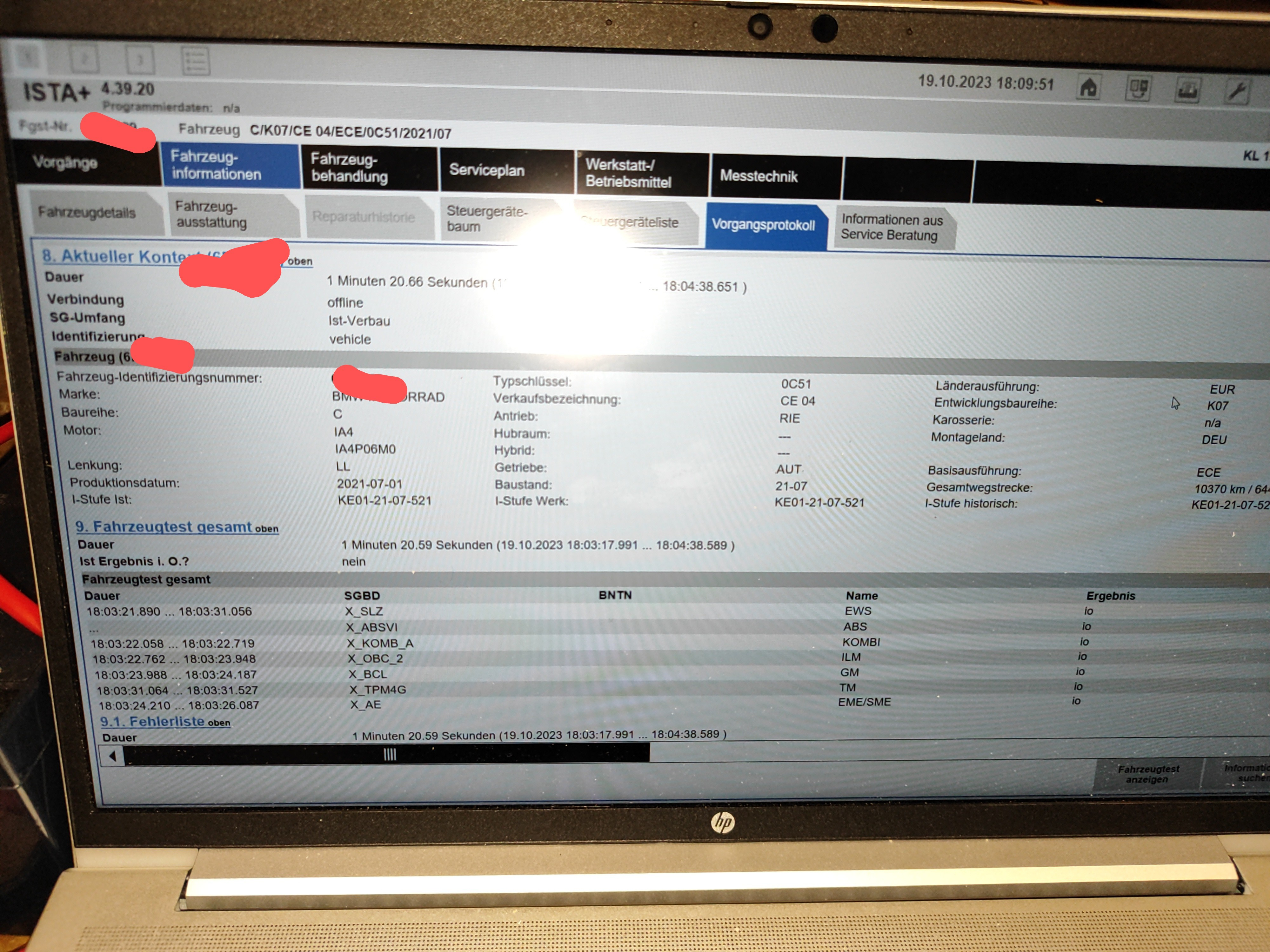 Fahrzeug Behandlung Akku auslesen.Kadett 1 hat geschrieben: Do 19. Okt 2023, 18:47 Es geht voran. Ich habe noch ein paar Wehwehchen mit der Software aber das bekomme ich schon noch hin. Der letzte BMW Händler hat mich dann auch veräppelt bzw. Keine Ahnung, siehe i-stufe.