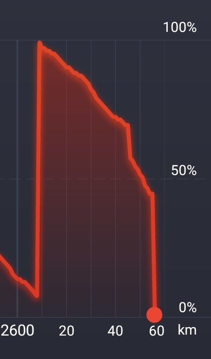 Bei 3744wh Gesamt kwh die beide Akkus haben abzüglich 20% damit man noch genug Puffer hat sind wir bei 2995wh die Nutzbar sind. Teile ich den Wert mit dem Verbrauch pro km komme ich auf 59,9km - 66,56km was eigentlich genau dem entspricht was jetzt angezeigt wird. Aber real ist der Verbrauch nun etwas höher oder wenn wir davon ausgehen das der Verbrauch unverändert ist dann ist es so wie ich glaube das der Akku kastriert worden ist.