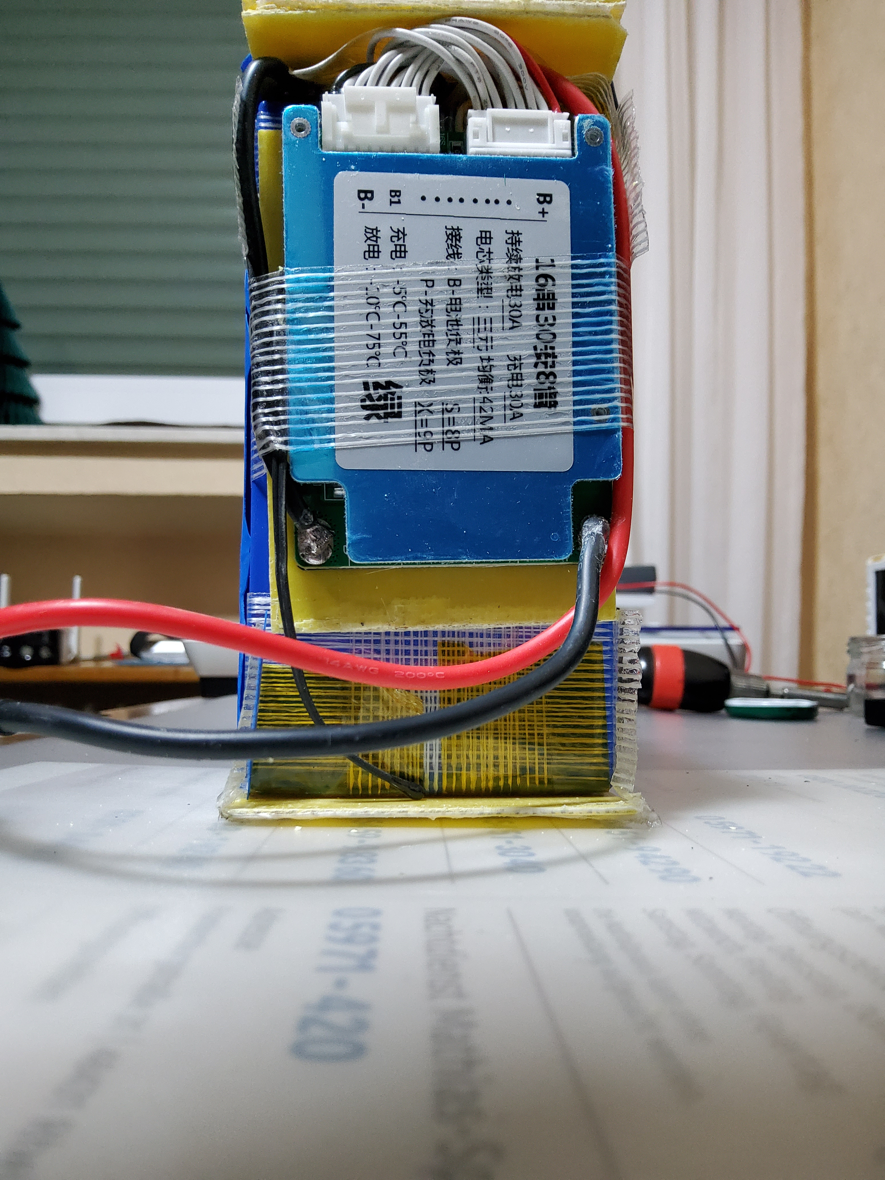 autsch, also professionell sieht das nicht aus, eher schnell zusammengeschustert.Die Zellenverbinder sind Punktgeschweißt und die Kabel zum BMS abgelötet.