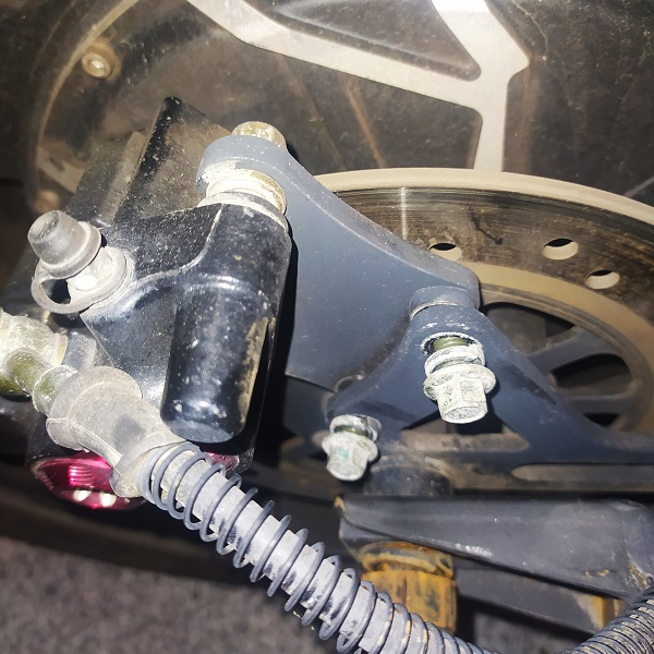 Danach die kleinen Imbusschrauben auf der Kabelseite (gegenüber der Bremsscheibe) entfernen und mit einem handelsüblichen Abzieher den Motor demontieren. Das ist ohne Kraftaufwand möglich.