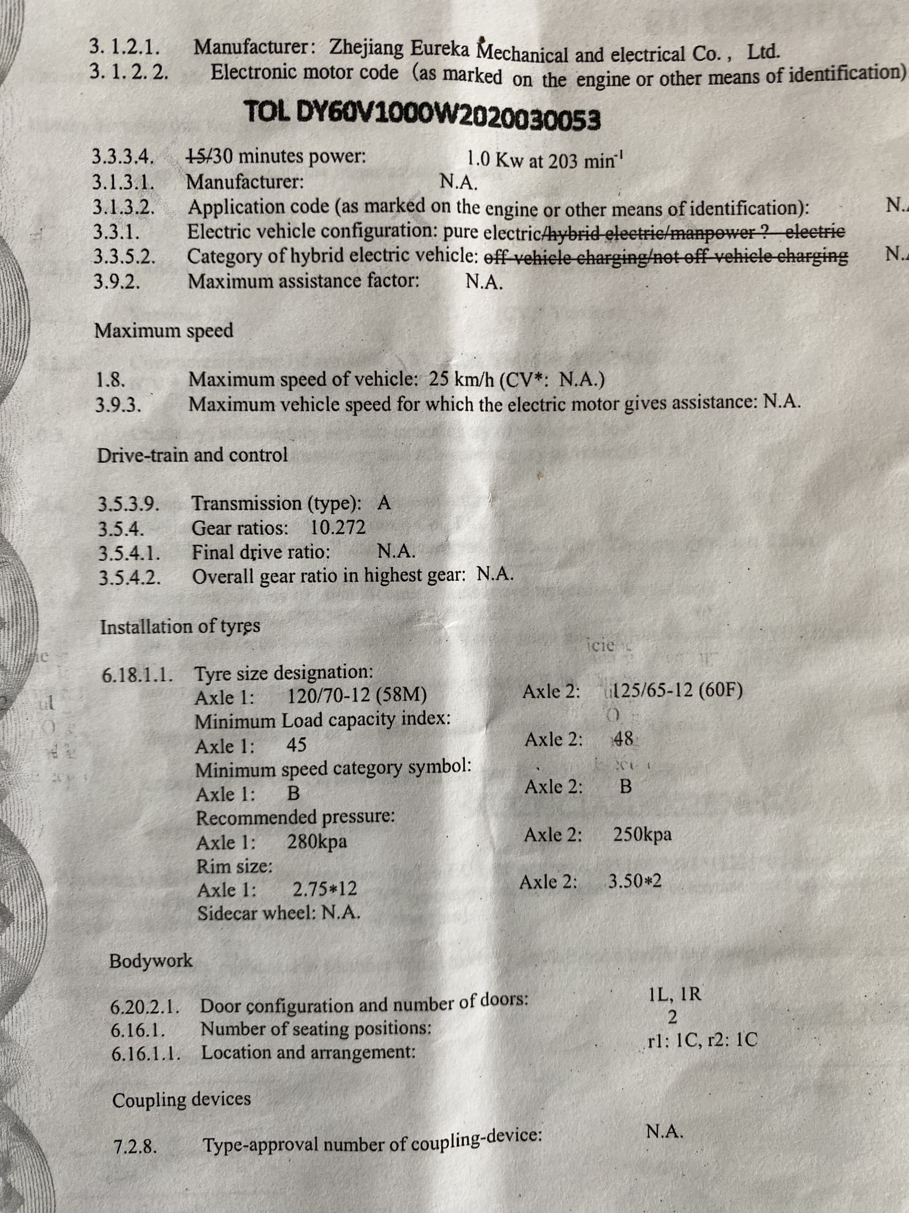 Die Kenndaten vom Motor stehen nicht in in den Dokumenten- dafür muss man den Motorhersteller/Typ kennen.