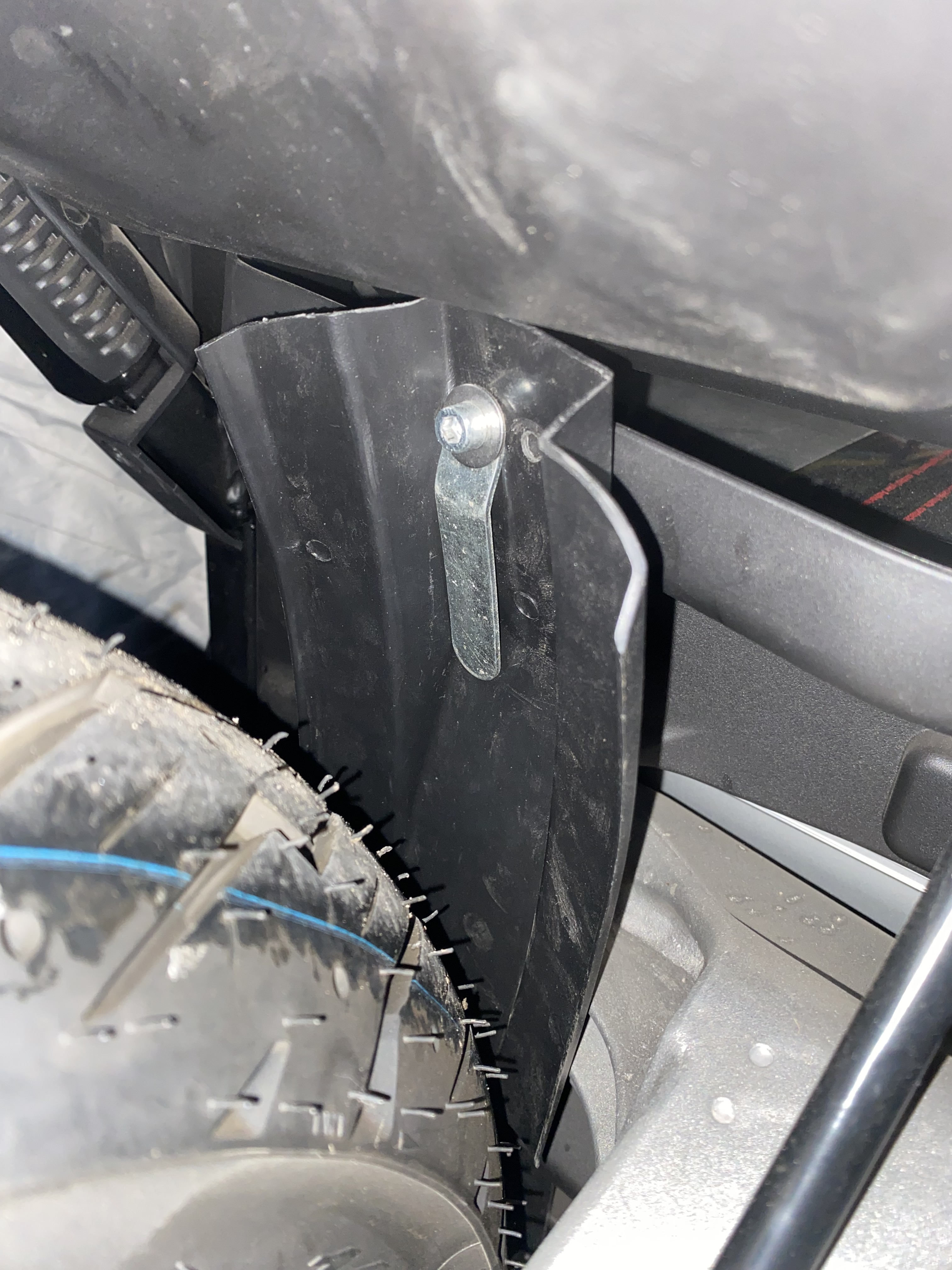 Genau so ein Schlüssel war es, ca. 0,8 -1mm verzinktes Blech. Ich habe den Kotschützer noch etwas weiter nach rechts versetzt, so deckt er besser das offene Batteriefach ab. Due hast auf jeden Fall 2 Versuche, in dem Set sind 3 Kotschützer dabei. Einer ist etwas länger, der würde sich auch noch perfekt mit einem scharfen Messer oder einer Eisensäge anpassen lassen. Leider ist mir bei meinem ersten Versuch ein Kotschützer ohne Erwärmung gebrochen. So musste ich den zweiten abschneiden. Foto folgt.