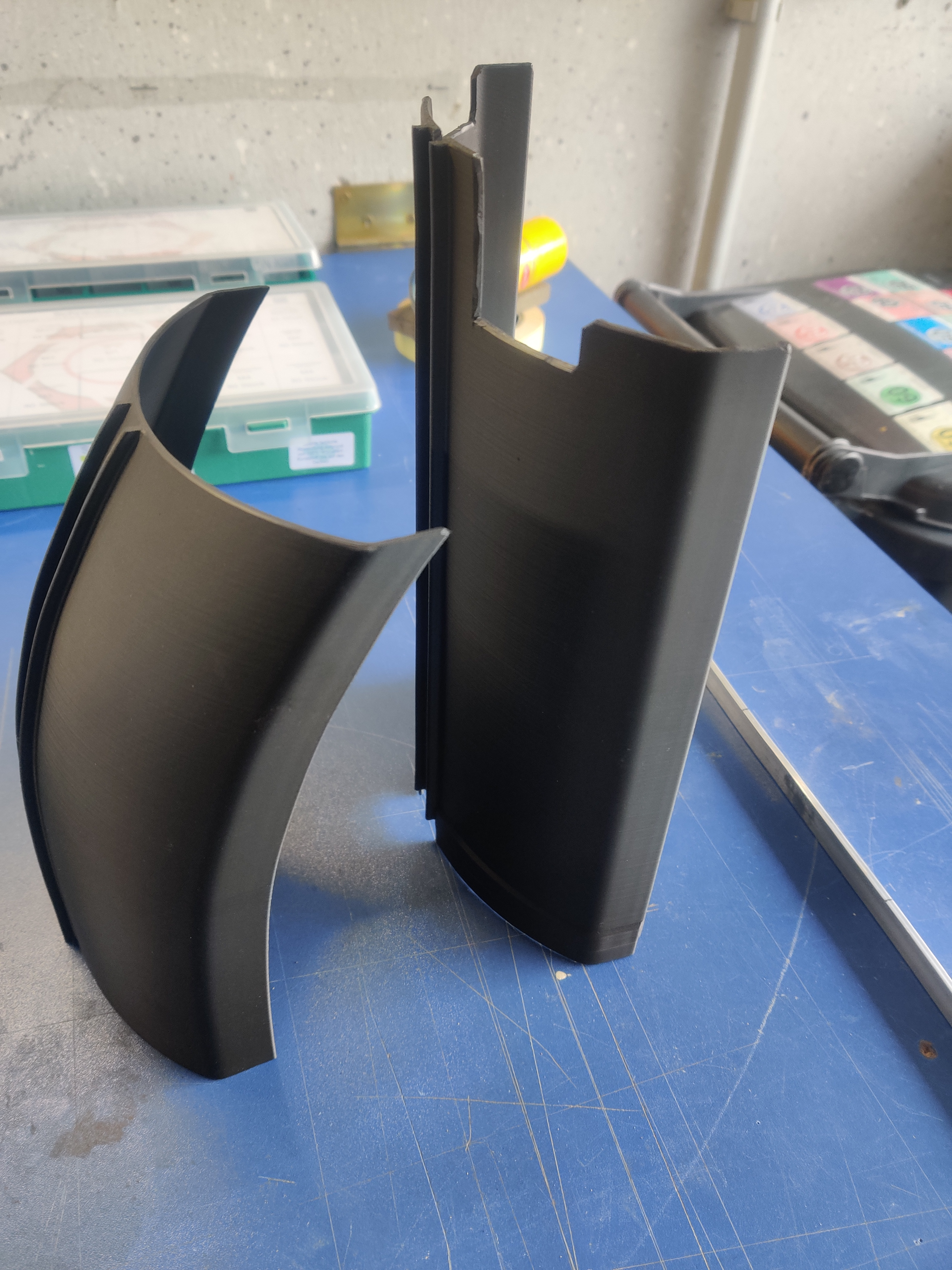 Das finde ich auch super gelungen. Als Verbesserung vielleicht die Alustange als Plastikstütze in die Konstruktion zu integrieren. Das müsste dann die Kräfte mit aufnehmen, aber wäre dann am Schutzblech von vornherein fest und macht die Montage einfacher. Dann wäre nur zu überlegen wie die 2 Teile stabil zusammengesteckt werden müssten. Ich habe den vorderen Teil mit 2 Komponenten kleber mit dem original Schutzblech zusammengefügt, hält bombenfest.