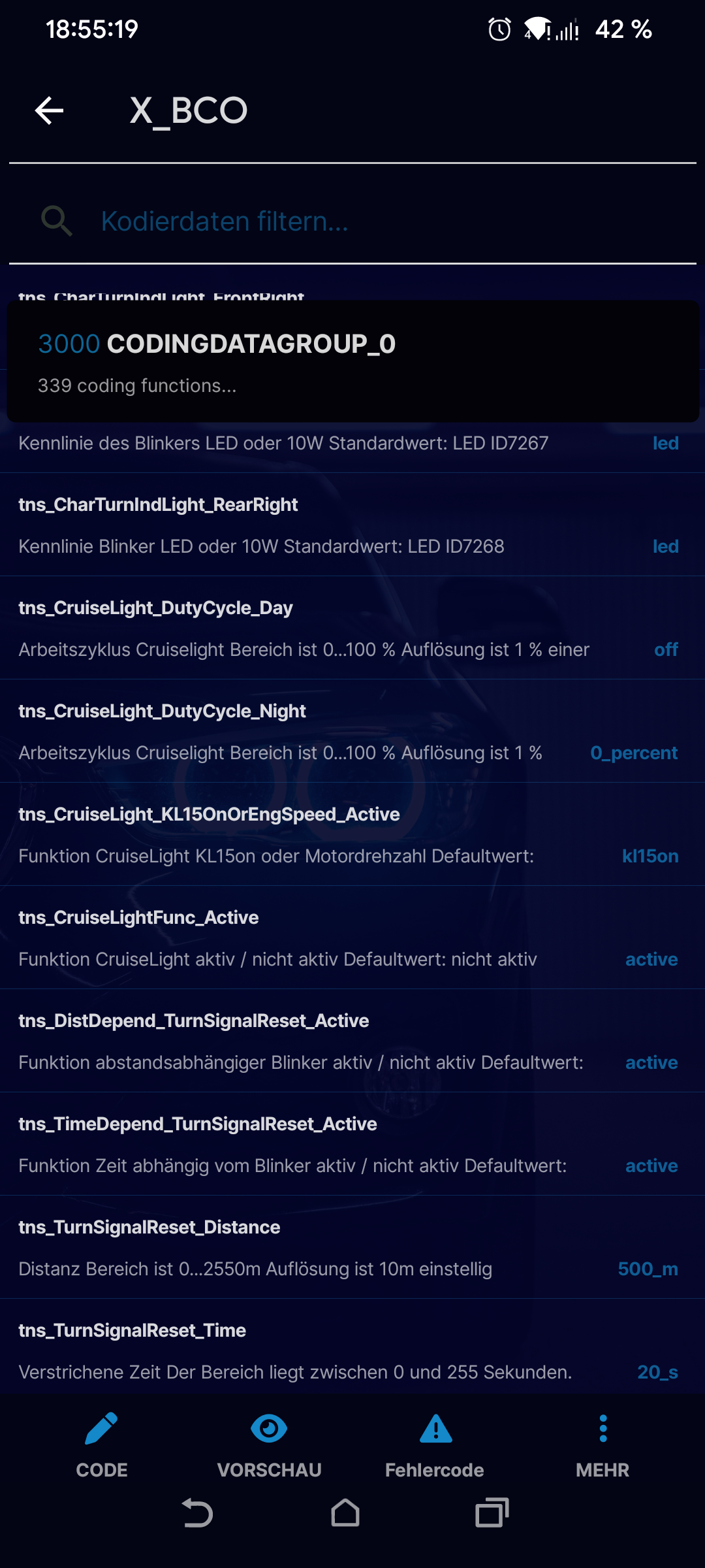 und auch ein paar andere sachen. In wie weit die funktionieren muss man sehen...man kennt es ja das korrespondiert meistens mit dem Bodycontrolmodul und dort muss dann auch das entsprechende value eingegeben werden.