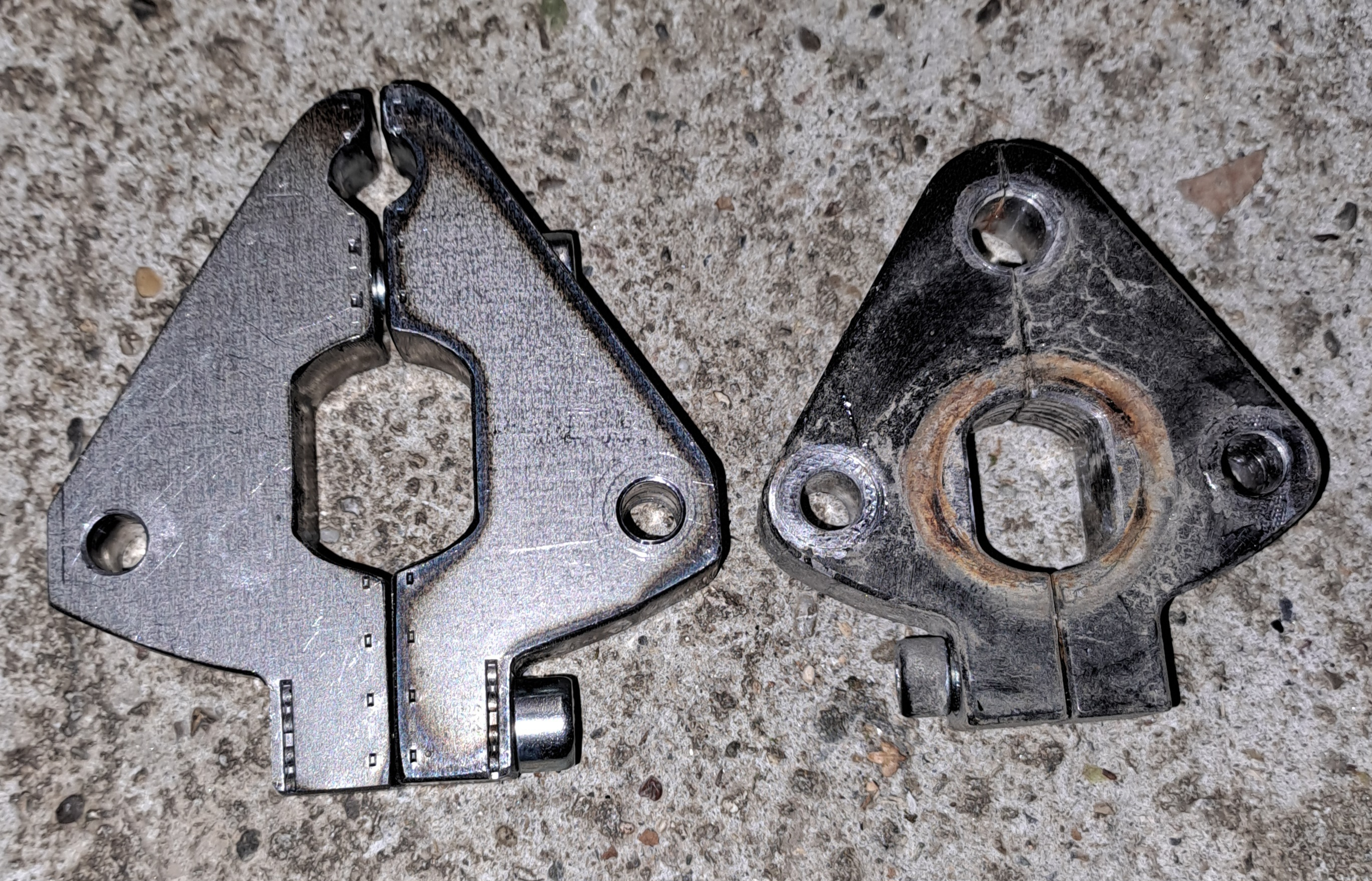 mir hat es am Hinterrad leider beide Achsblöcke zerrissen. Ich bin mir nicht 100% sicher, ob sich das Achsblock nennt. Ich meine den Aluguss-Block in der Hinterachsaufnahme bzw. Schwinge. Beim Motorrad würde man das denke ich Kettenspanner nennen.