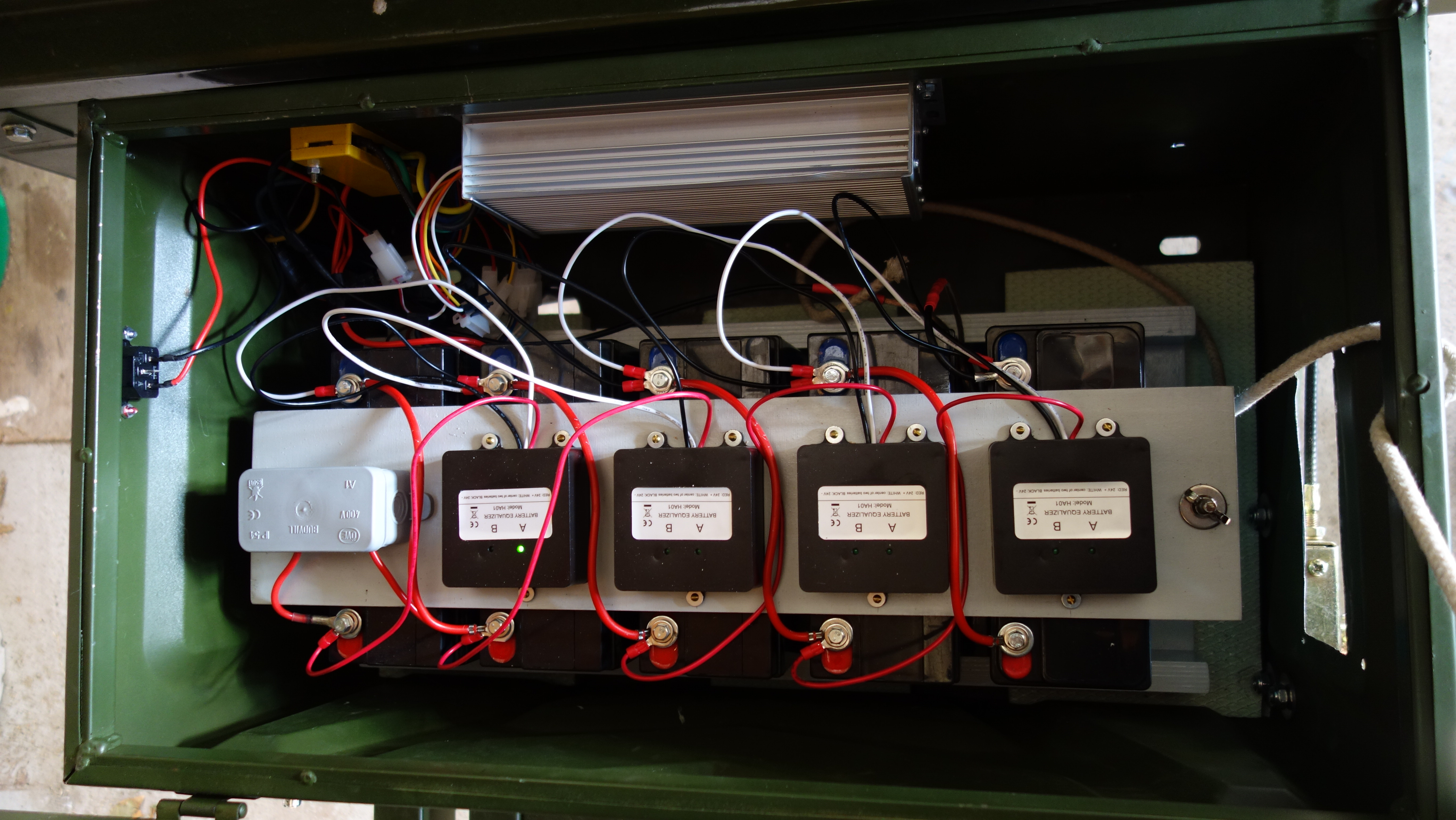 Danach habe ich fünf einzelne Ladegeräte, für jede Batterie eins, eingebaut.