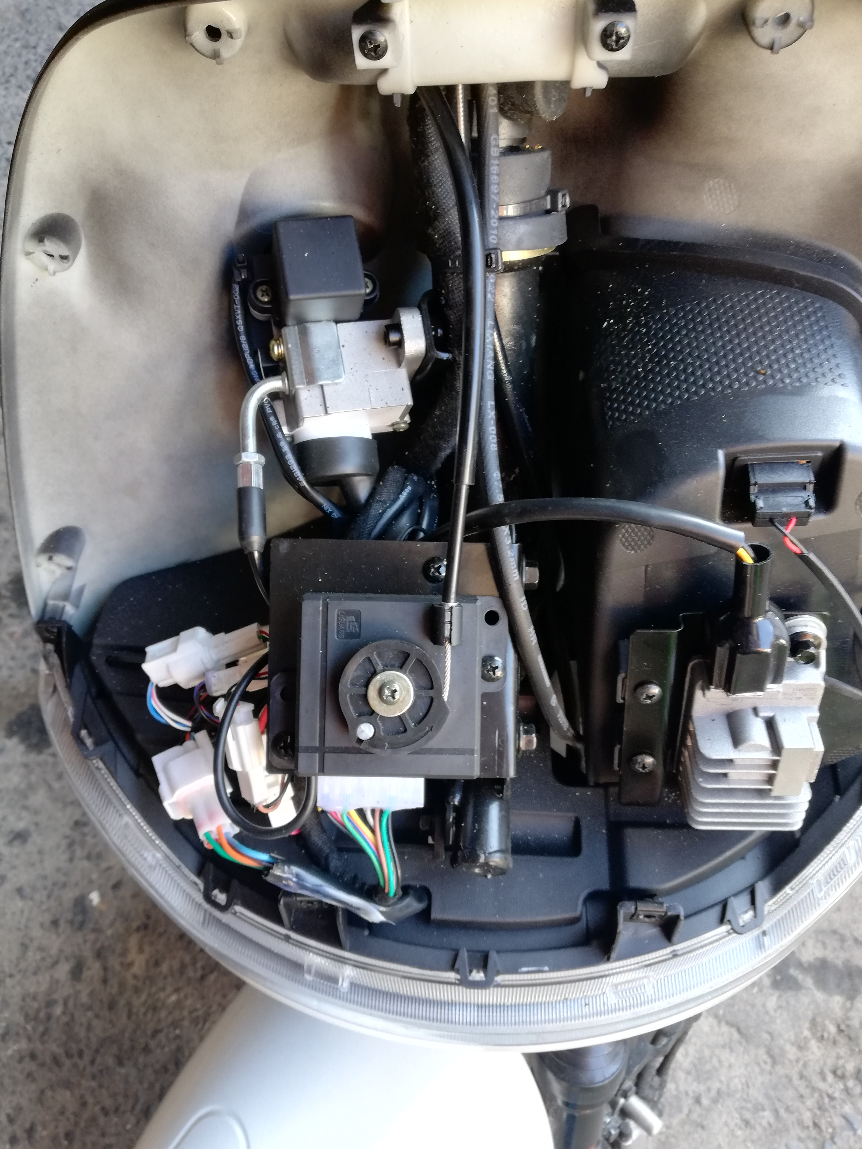 Dahinter sieht es so aus wie auf dem Bild. Wo das Zündschloss ist kann man erkennen. Kommt man an den Seilzug heran wenn man die Gummihülle links zurückschiebt?
