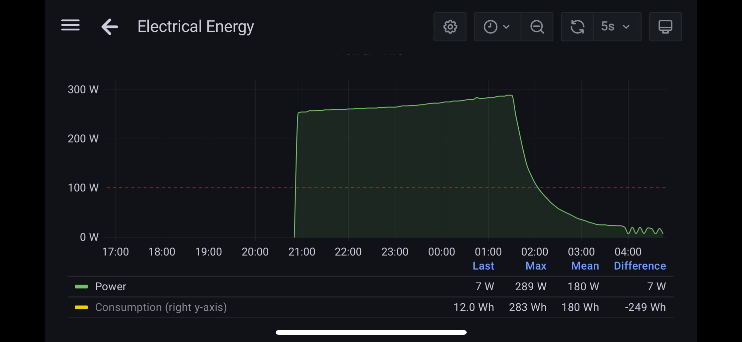 Die 18 W konnte ich nachvollziehen. Es schwankt gerade zwischen 18 und 7 W (siehe Ladekurve). Die Nous Tasmota WLAN Steckdosen sind sehr zuverlässig und Leistungsmessungen plausibel. Ich habe einen Timer gesetzt, der um 6 Uhr täglich ausschaltet und schalte die Dose abends manuell ein, um den Ladevorgang zu starten (eventuell automatisiere ich das noch auf Basis des Ladestroms).