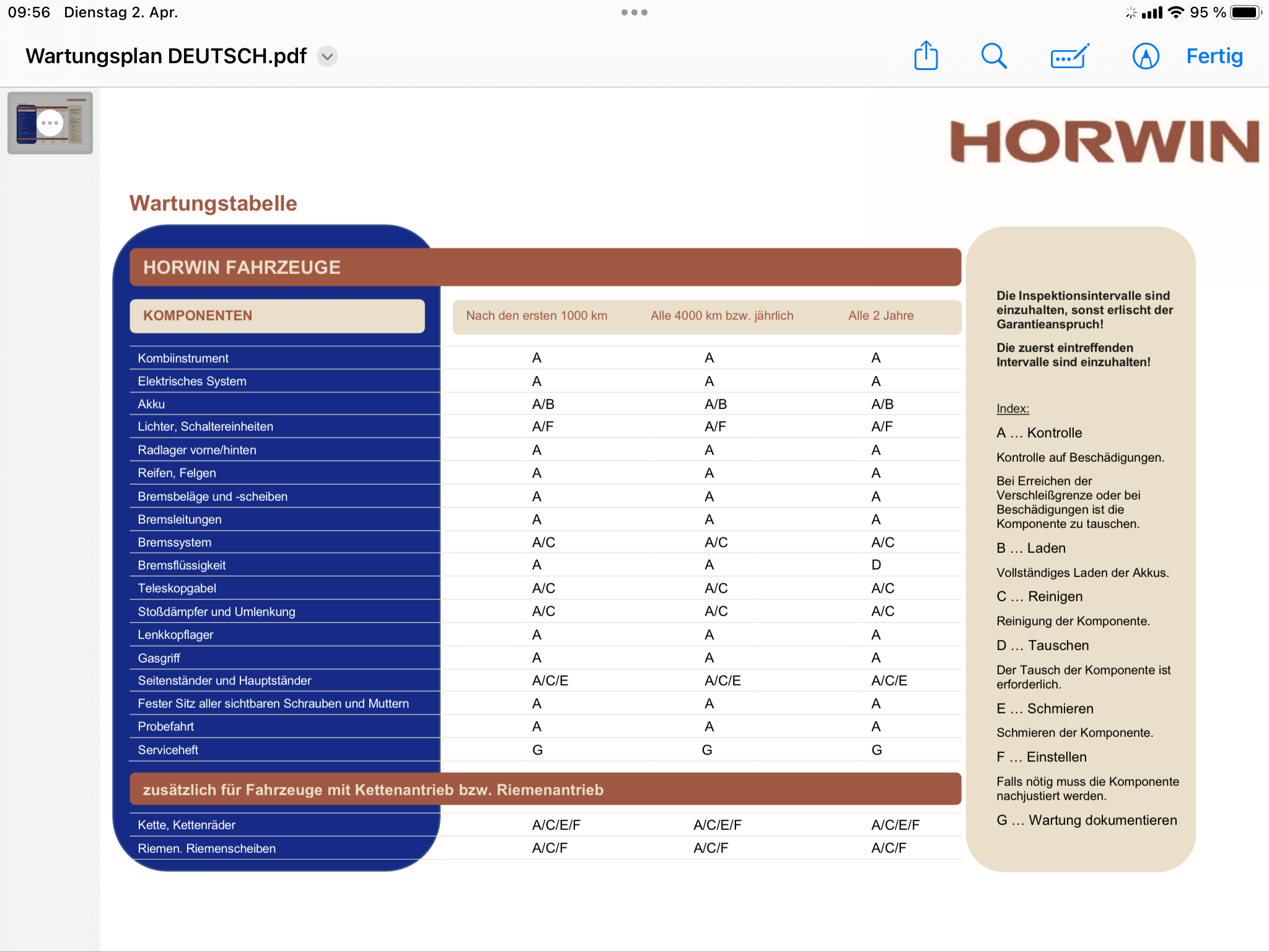 Aber den Punkt an sich finde ich interessant, ich hatte mir das noch gar nicht überlegt. Alle 6 Monate ist aber eher wohl ein Übersetzungsfehler. Das wahre Intervall sollte man mal von HORWIN erfragen.