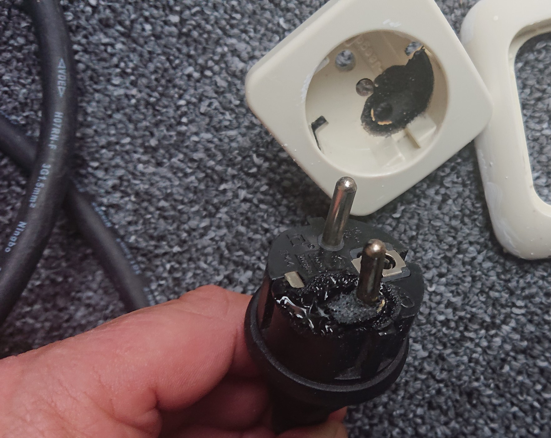 Wie schon vom Vorredner geschrieben, die Kontakte korrodieren mit der Zeit, die Federklemmen werden müde. Eventuell auch der Kontakt zwischen Kabel in der Wand und der Steckdose, das würde die warmen Kabel zur Steckdose erkören, Kupfer ist ein guter Wärmeleiter. Oder wie auch schon benannt, der Stecker eines billigen Dreifachverteilers als Wärmequelle , wo gerne an den Kabelquerschnitten gespart wird. Neue Steckdose einbauen, falls die Kabel noch mit funktionsfähiger Isolierung an der Steckdose ankommen. Und zumindest Markenware bei Steckdosen kaufen, billiger Schrumms ist am Ende teurer. Ich hab letzten Winter in Vereinsgebäude vier AP-Steckdosen aus den 90er Jahren ausgewechselt, die deutliche Hitzeschilden hatten. Und da waren höchstens Staubsauger oder Kompressor angeschlossen - also nix dauerhaftes und nix über 1,4kW.