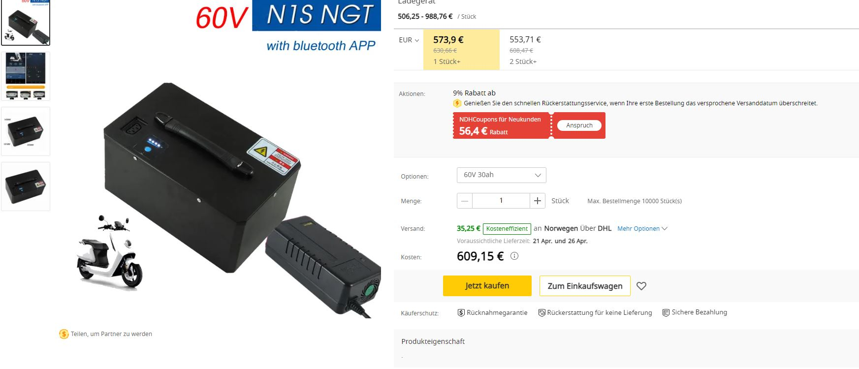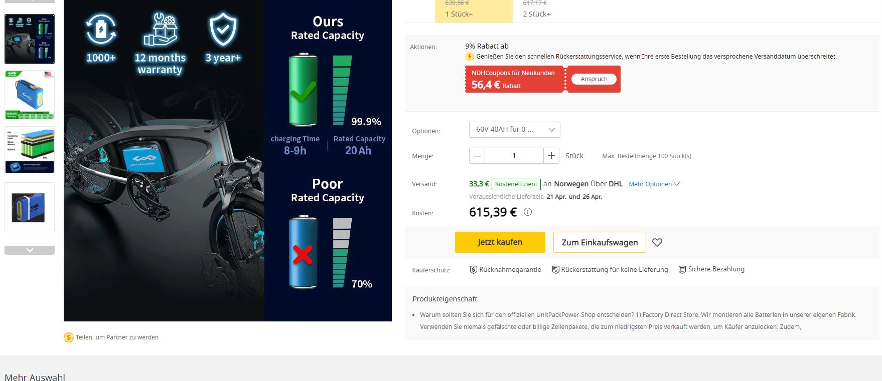 also Li -Ion Akkus habe die größte Energiedichte. darum sind sie für Elektroantriebe in E-Shoppern E-Rollern oder E-Motorräder prädestiniert sind. Und, ganz wichtig, sie haben keinen Memorie-Effekt haben. Wenn du die Möglichkeit hast in deinem Fahrzeug 2 Batterien unterzubringen, kannst du sie gefahrlos parallel schalten. Sie müssen nur die gleiche Spannung haben. Ah können differieren. Das geht mit LiFePo Batterien nicht. Die müssen genau gleich sein! Ich kaufe meine Batterien ausnahmslos bei AliExpress. Die Preise sind unschlagbar. Und der Kauf bei AliExpress ist so sicher wie bei Paypal. Besser noch, wenn deine Bestellung nicht zur vereinbarten Zeit geliefert wird; AliExpress informieren und du hast innerhalb von Max. 1 Woche dein Geld zurück. Aber, und da gib ich dir Recht, gibt es auch bei AliExpress schwarze Schafe. Die Angebote mußt du genau mit der Artikelbeschreibung vergleichen, sonst kaufst du etwas was du garnicht haben willst. Kritisch wird es wenn die Batterie deinen Wünschen angepasst werden muß. Was vielfach angeboten wird. Wenn die Artikelbeschreibung nicht genau zu deinen Anpassungswünschen passt mußt du dir die Änderung über den Button „Kontakt zum Liegeranten“ bestätigen lassen und darauf hinweisen das das Bestandteil deines Kaufvertrages ist. Funktioniert, hab ich schon mehrfach angewendet. Überprüfe auch das Angebot auf Plausibilität. Ein Akkupack von 60V 100Ah mit 18650ger Zellen gibt es nicht. Die größten 18650ger haben Max. 3500mAh und 21700ter gibt es bis 5000mAh. Auch das Boxmaß kann zur logischen Abprüfung herangezogen werden.