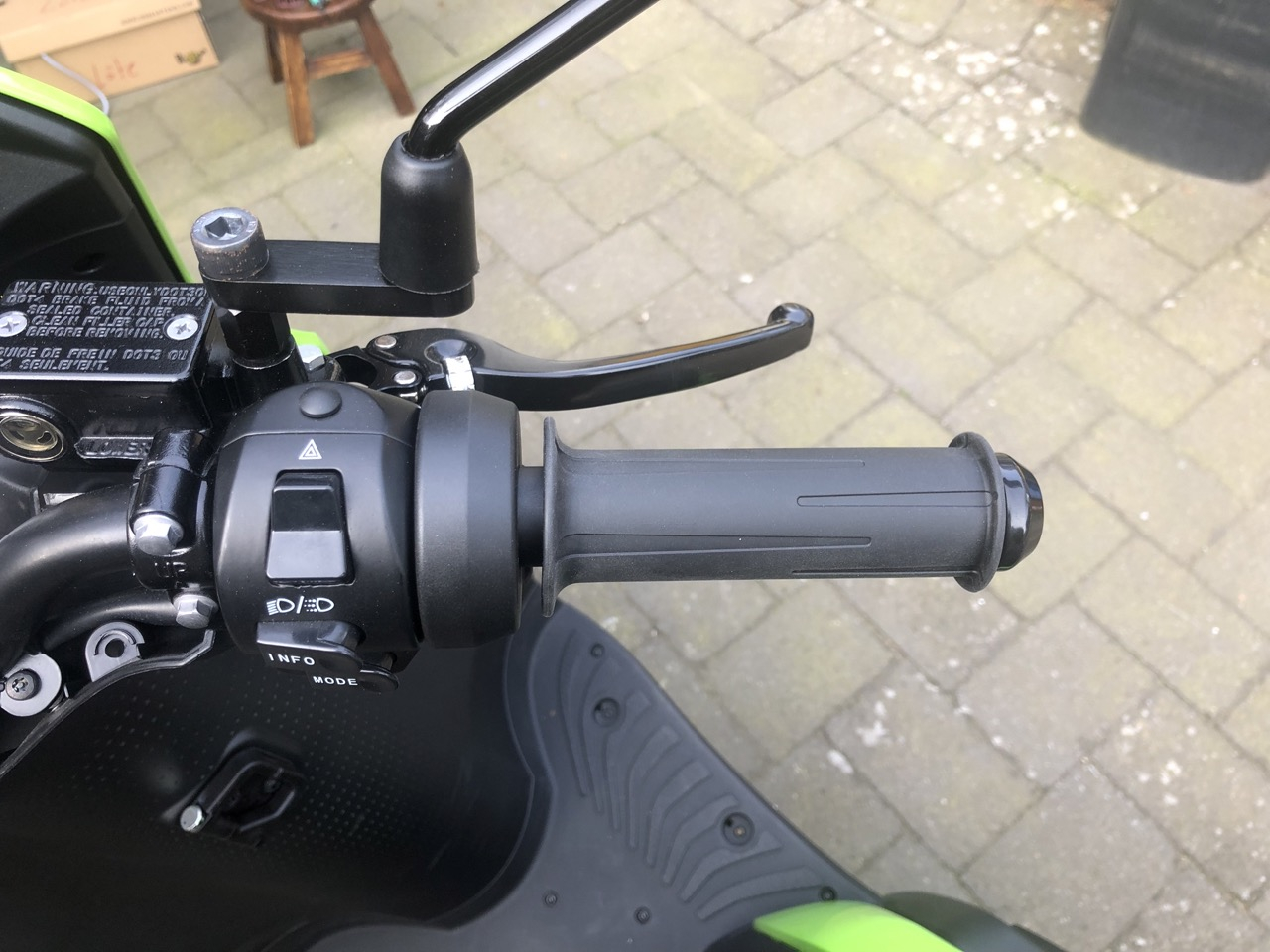 Der Gasgriff ist heute gekommen. Was für ein Unterschied zu dem Spielzeuggriff von Silence. Endlich kann man präzise Gas geben und der Griff lässt sich in seiner Position auch ohne Daumentrick halten. Der Umbau war sehr einfach. Kleine Schrumpfschläuche und einen Lötkolben brauchte man zum normalen Werkzeug dazu.