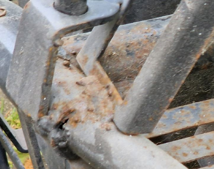 Übrig bleibt nur der Rahmen: Wenn man sich den mal anschaut, kann man die chinesische Herkunft leicht erkennen. Die Schweissnähte hab ich in der 1. Woche in der Ausbildung besser hinbekommen als das: Das ist grausig. Nichtmal die Spratzer weggemacht.