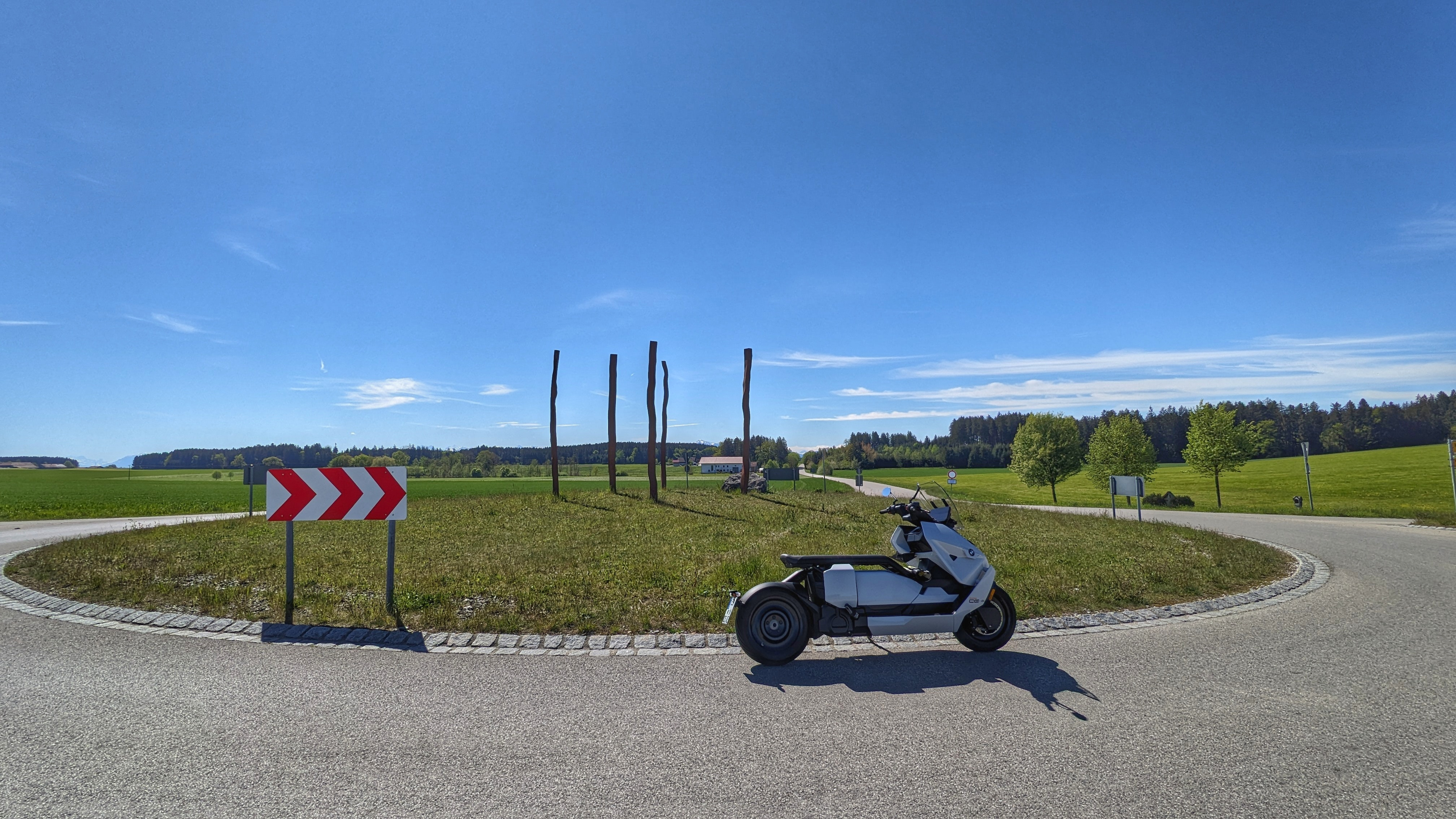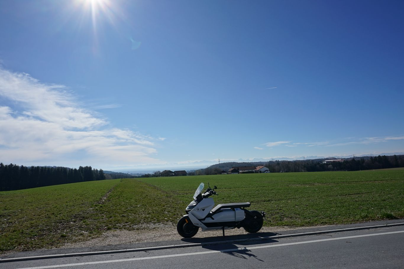 Der CE 04 ist ein perfektes Sommerfahrzeug. Es läuft einfach viel besser als im Winter. 5,9kWh/100km Netto-Verbrauchsschnitt über diese hügelige Tour, 5,1kWh nachgetankt an zwei kurzen und angenehmen Ladestopps. Ich musste wieder nach Hause zum Gartenarbeiten, sonst hätte man da enorm anstückeln können. Oder gleich weiter nach Italien. Seufz.