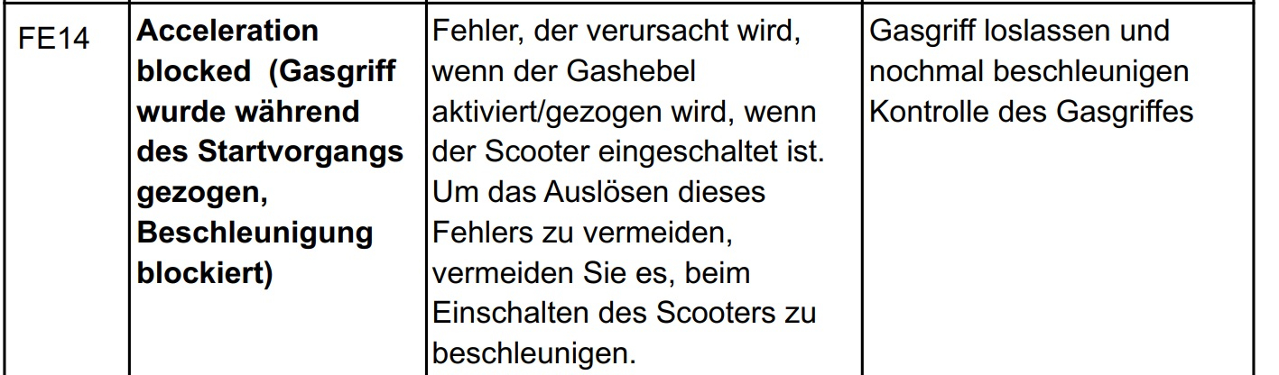 Hallo zusammen. Hat von euch jemand auch schon mal den E014 Error erfahren "Acceleration Blocked" bei niedrigem Akkustand?