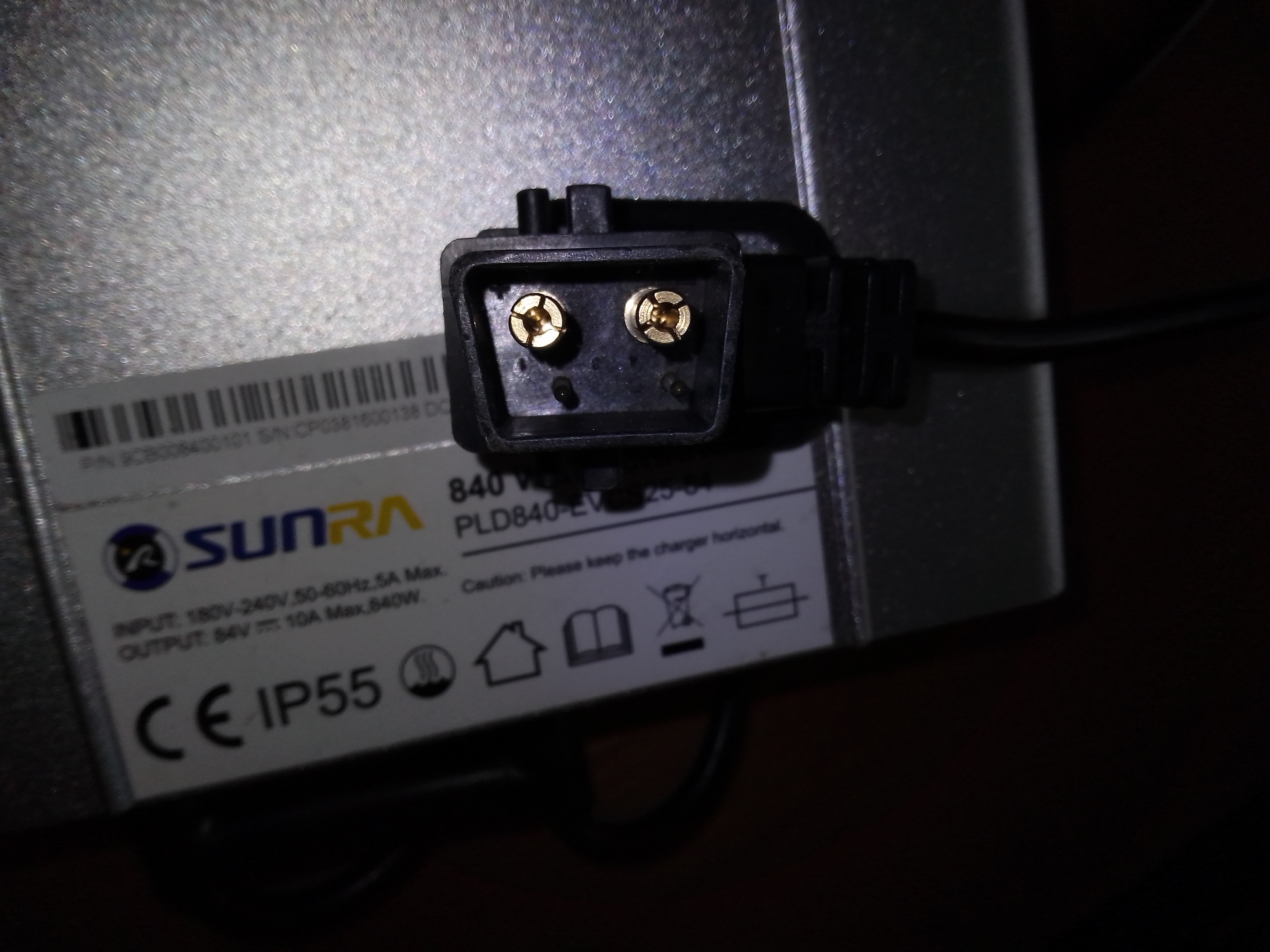 Bitte nochmal um Hilfe hinsichtlich der Kontaktbelegung des Steckers. Habe nochmal ein besseres Bild des Steckers vom Ladegerät. Würde ein 84V / 5 A oder 7,5 A Ladegerät nehmen, denn ich benötige eigentlich keine Schnellladung. Als Elektrolaie ist das m.M. für den Akku schonender, ich habe genug Zeit zum Laden und hinsichtlich der Wärmeentwicklung (trotz Lüfter ist das bisherige 84 V 10 A Ladegerät ziemlich heiß geworden) scheint mir das auch sicherer.