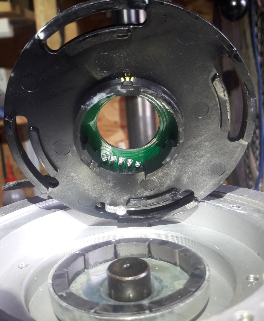 Die Platte mit den Hallsensoren kann großzügig in Langlöchern verdreht werden, genaugenommen kann ich sie inzwischen komplett durchdrehen.