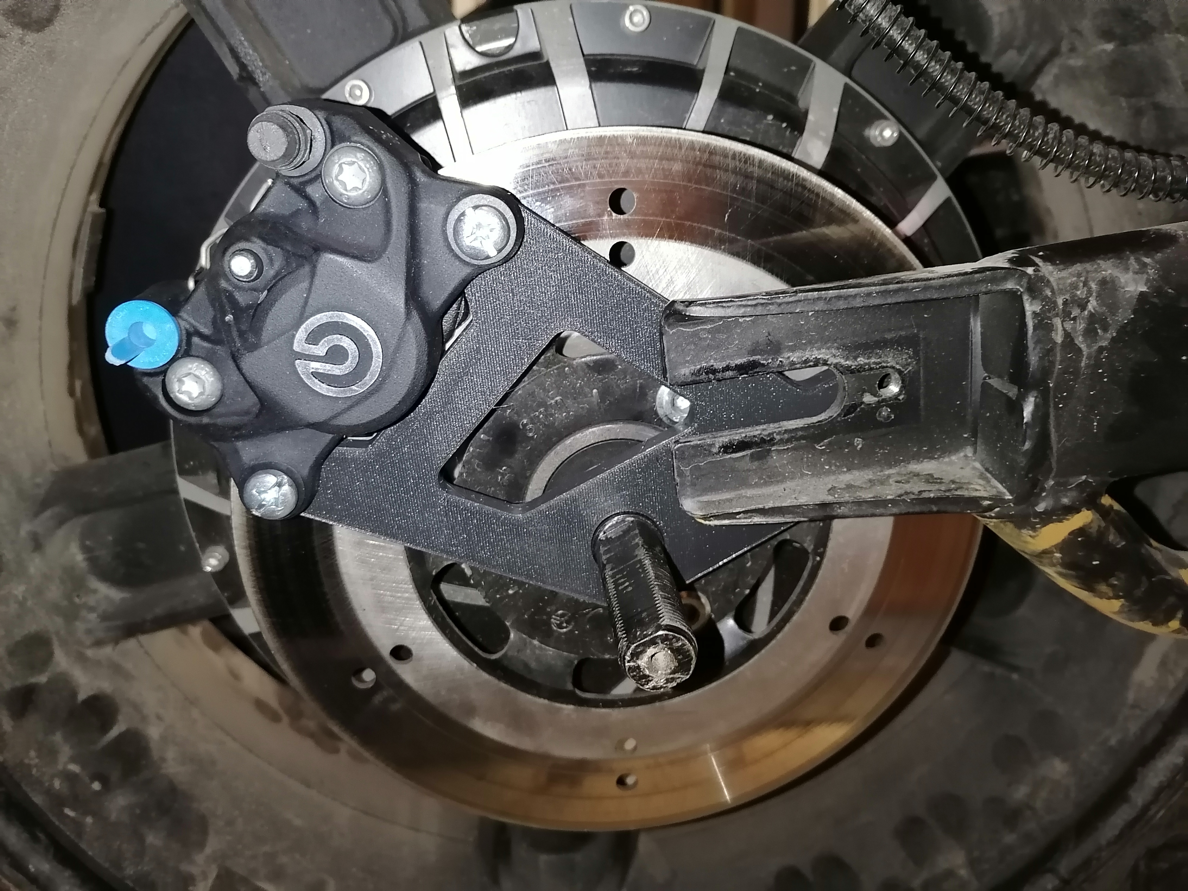 new bracket for new Brembo rear brake caliper is currently being manufactured so I will ride again soon :twisted: