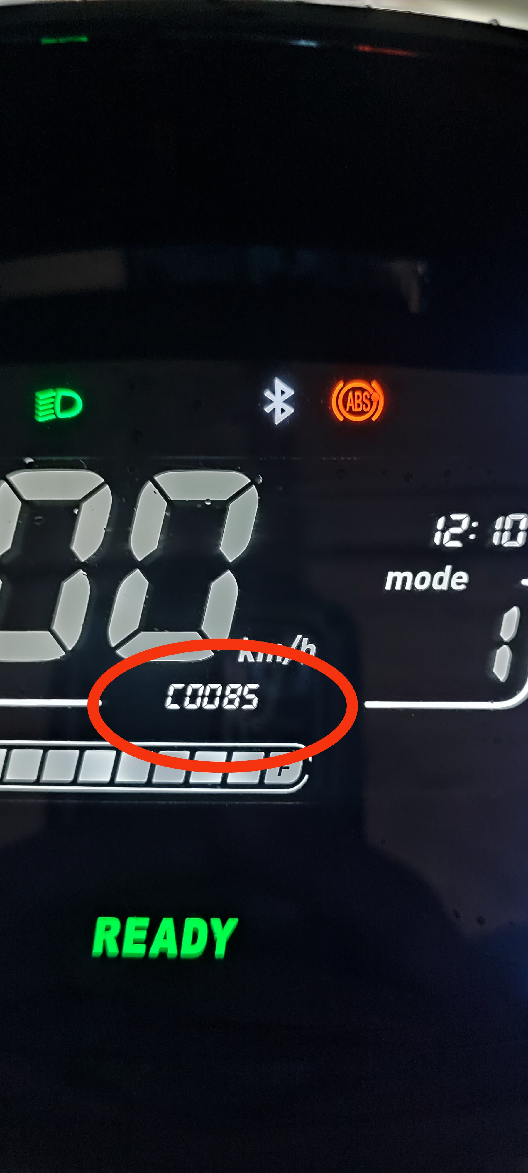 Den Fehler C0085 kann man erzeugen, wenn der Roller auf dem Mittelständer steht und man dann bei Ready Strom gibt und das Hinterrad sich motorisch dreht. Das TCS kann dann mit den Daten nichts anfangen und greift ein, da das Vorderrad keine Drehung meldet und dann steht C0085 in meinem Display. Roller auschalten, draufsetzen und losfahren, dann ist der Fehler an meinem E300SE weg, habe alle Updates die möglich sind und waren eingespielt. In dieser Anzeige habe ich dann vor ready die Gesamtfahrstrecke, bei ready die noch mögliche Fahrstrecke mit nem - davor, also z. B. heute morgen bei Aufladung auf 100% stand da dann -108km.