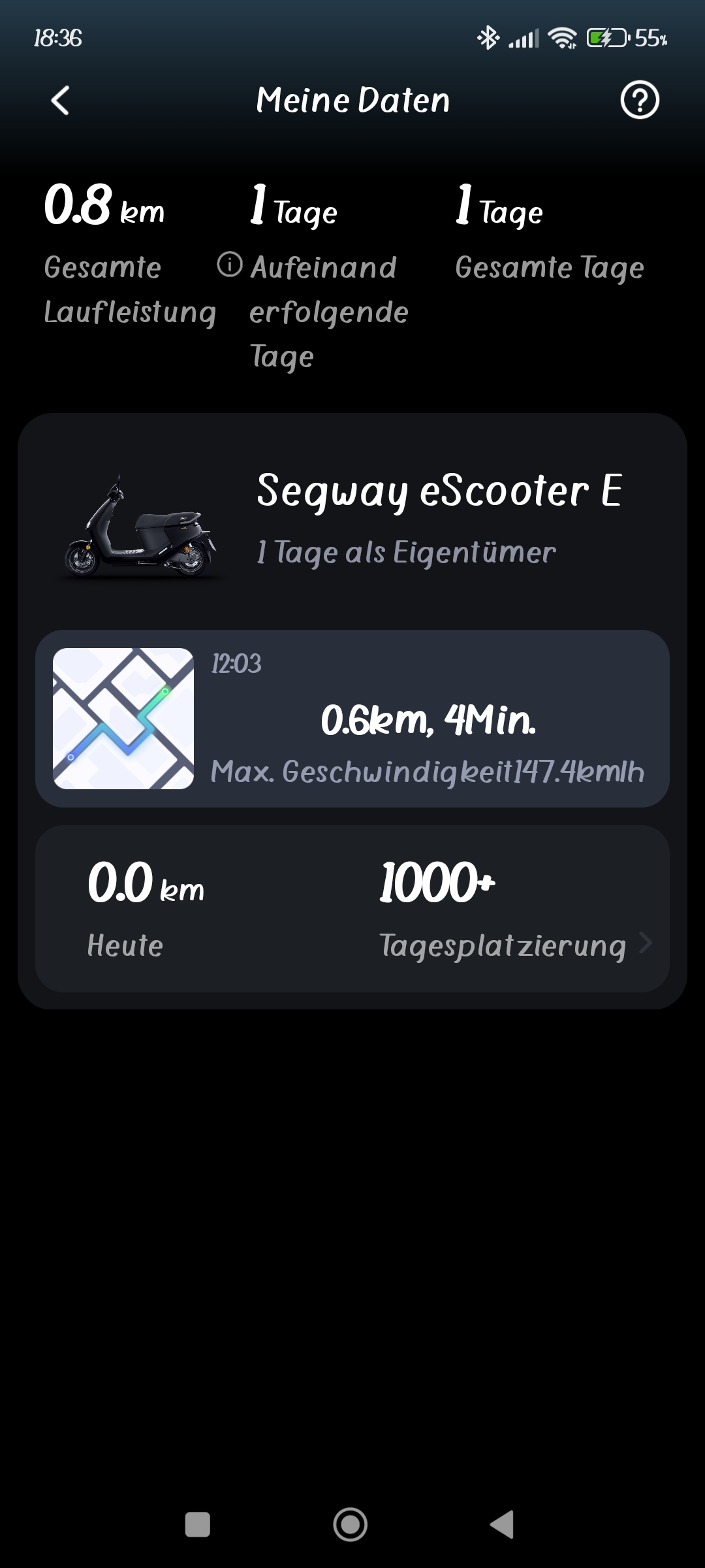 Laut APP ist die Gesamtlaufleistung 0.8 Km