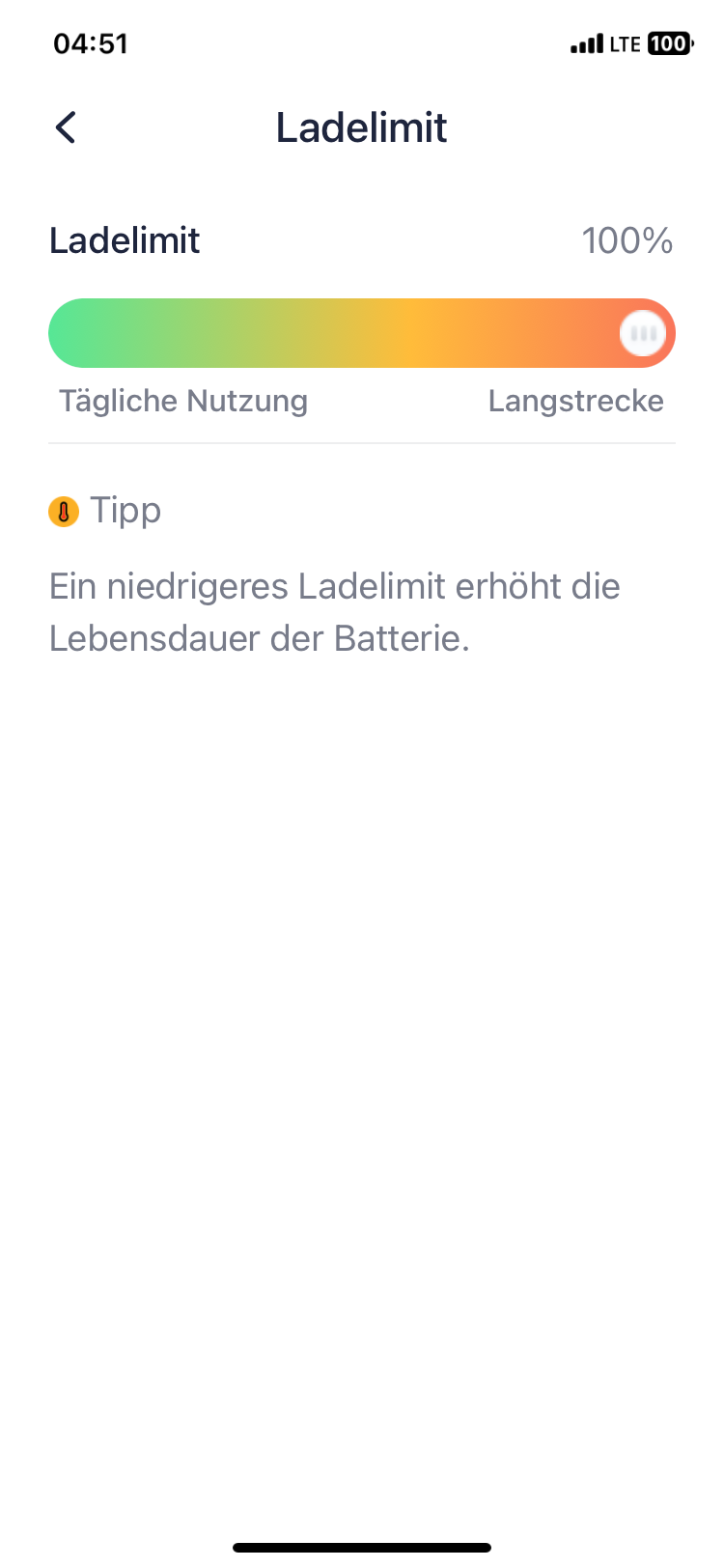 Habe per APP das Ladellimit auf 100% gestellt aber bei 90% war Schluss.