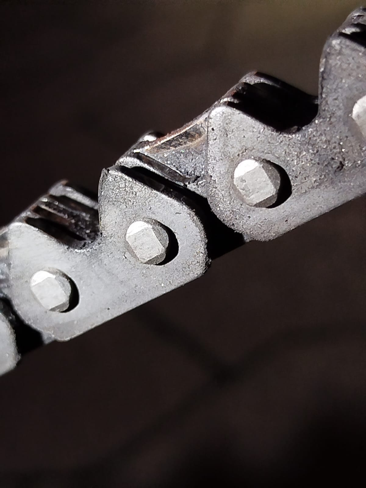 Das Geräusch eines rutschenden Lagers im Sitz kenne ich aus dem Maschinenbau- hört sich an wie mit Kreide auf der Tafel...ein quitschendes Schaben. Die Kette sieht übel aus. Da stimmt es mit der Flucht aber bei weitem nicht. :shock: