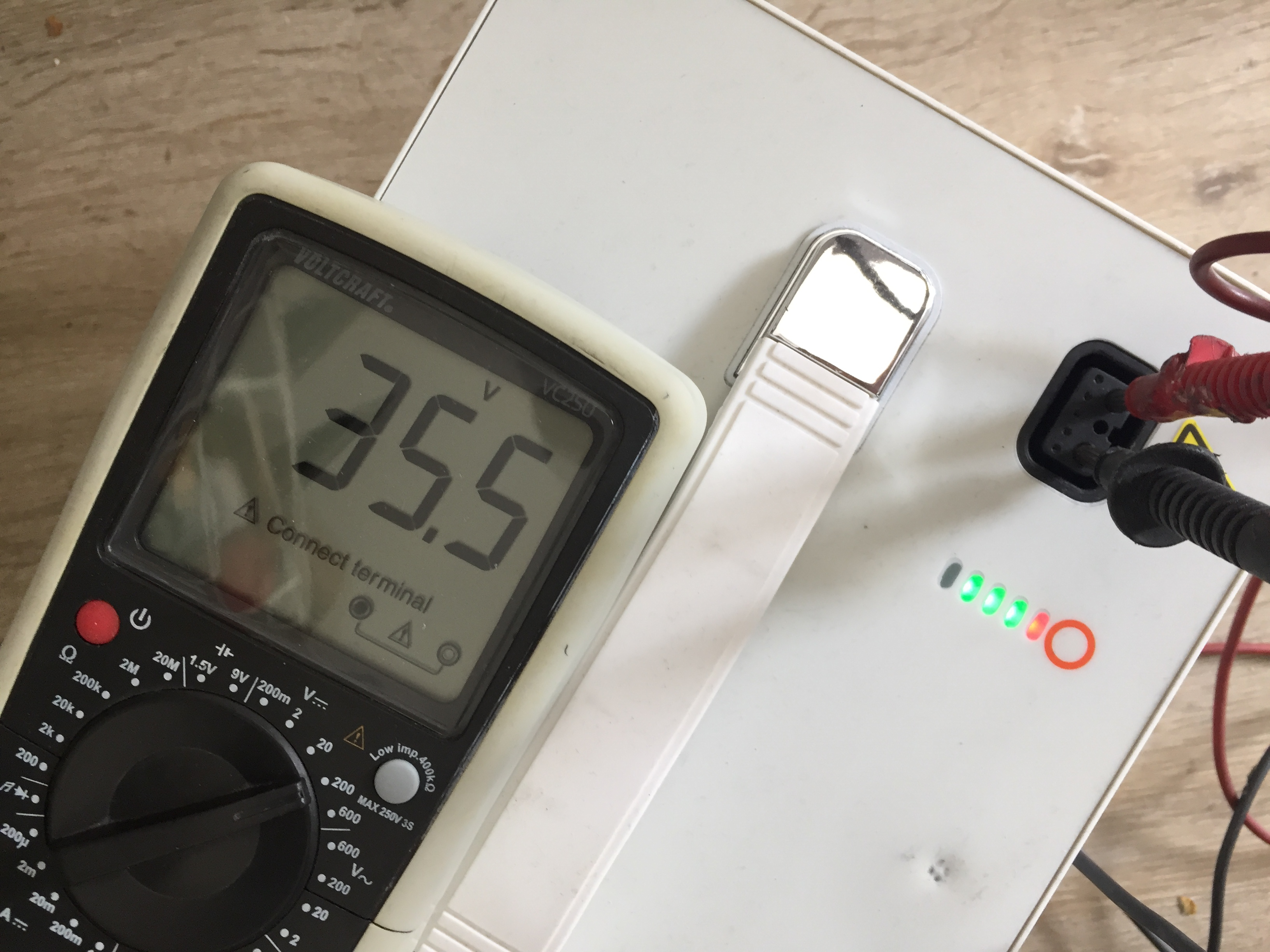 Wie kann ich denn sinnvoll messen? Den Akku am Roller lassen? Da wo ich den Kabeladapter entfernt habe habe ich ja auch einen Messpunkt...