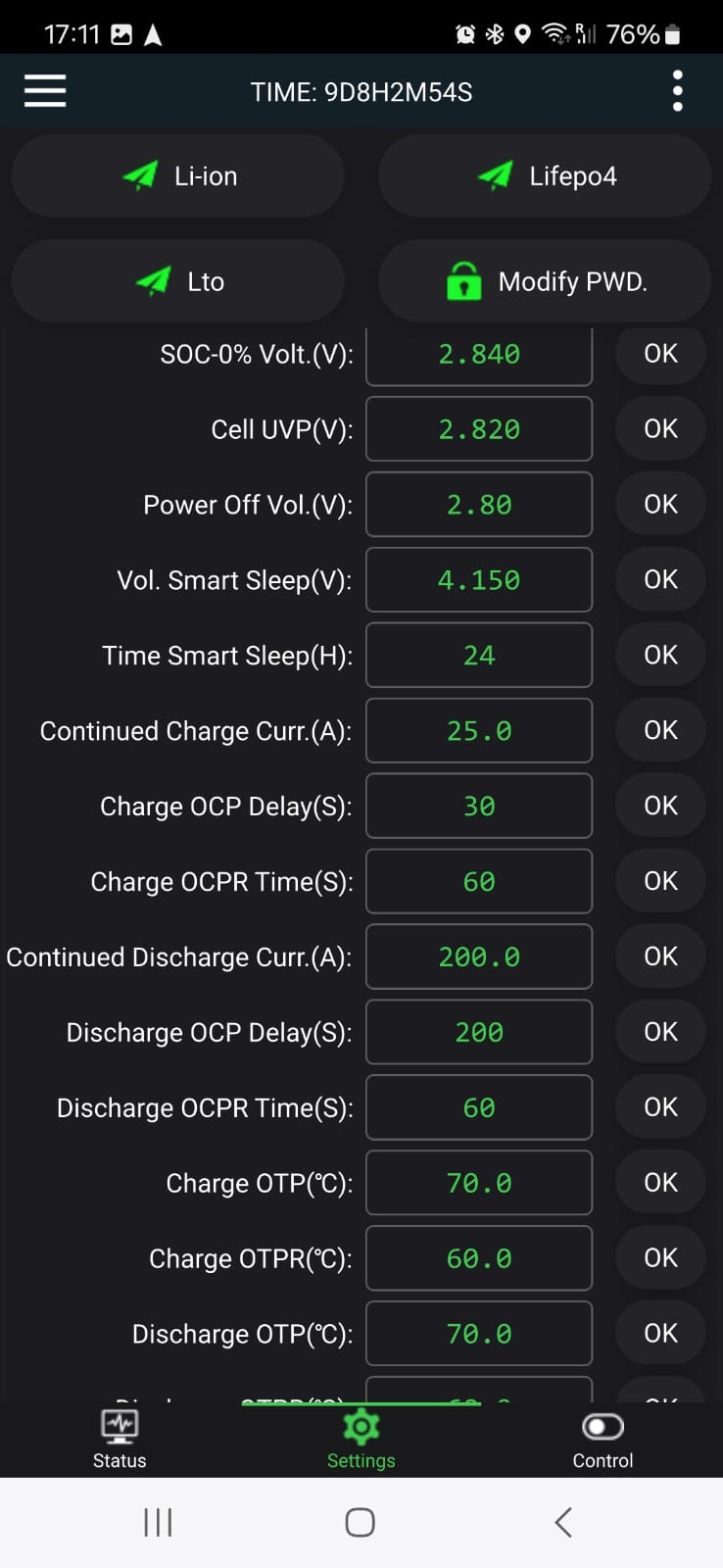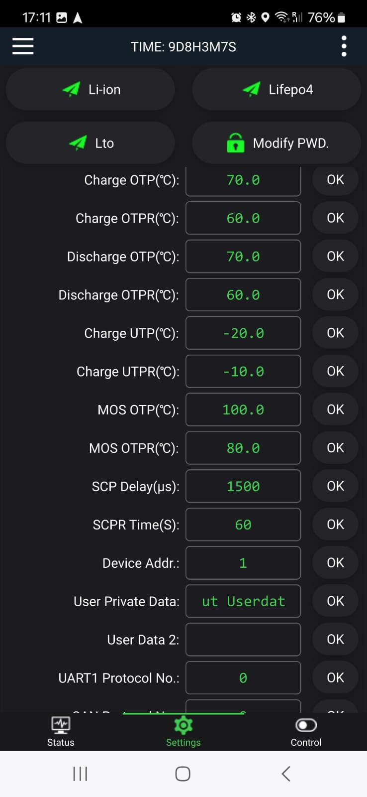 Das BMS habe ich dann selbst eingebaut, bin jetzt aber mit den Einstellungen überfordert.
