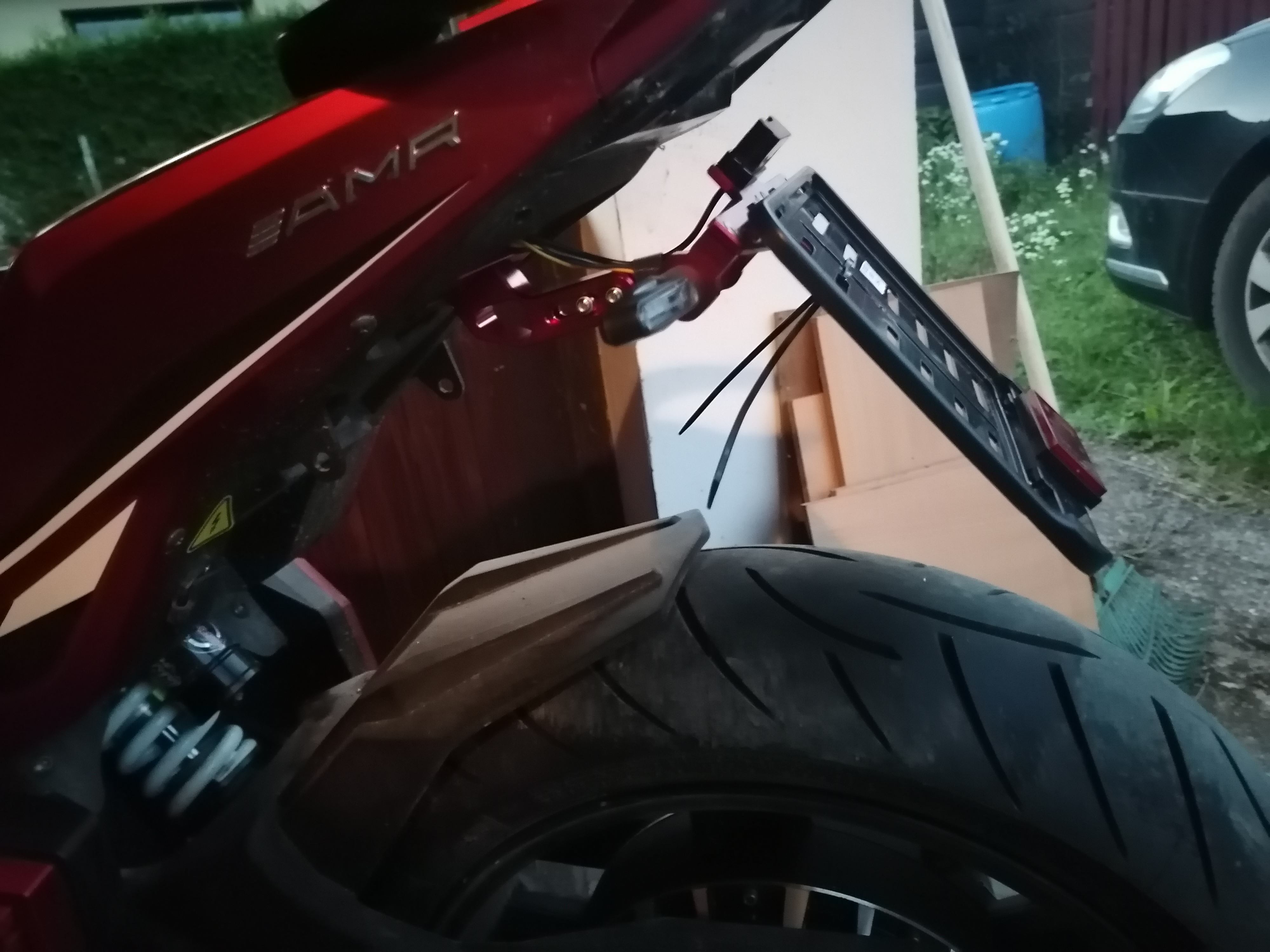 I replaced that tail with bracket from Aliexpress, holds great and turn indicators are flexible.