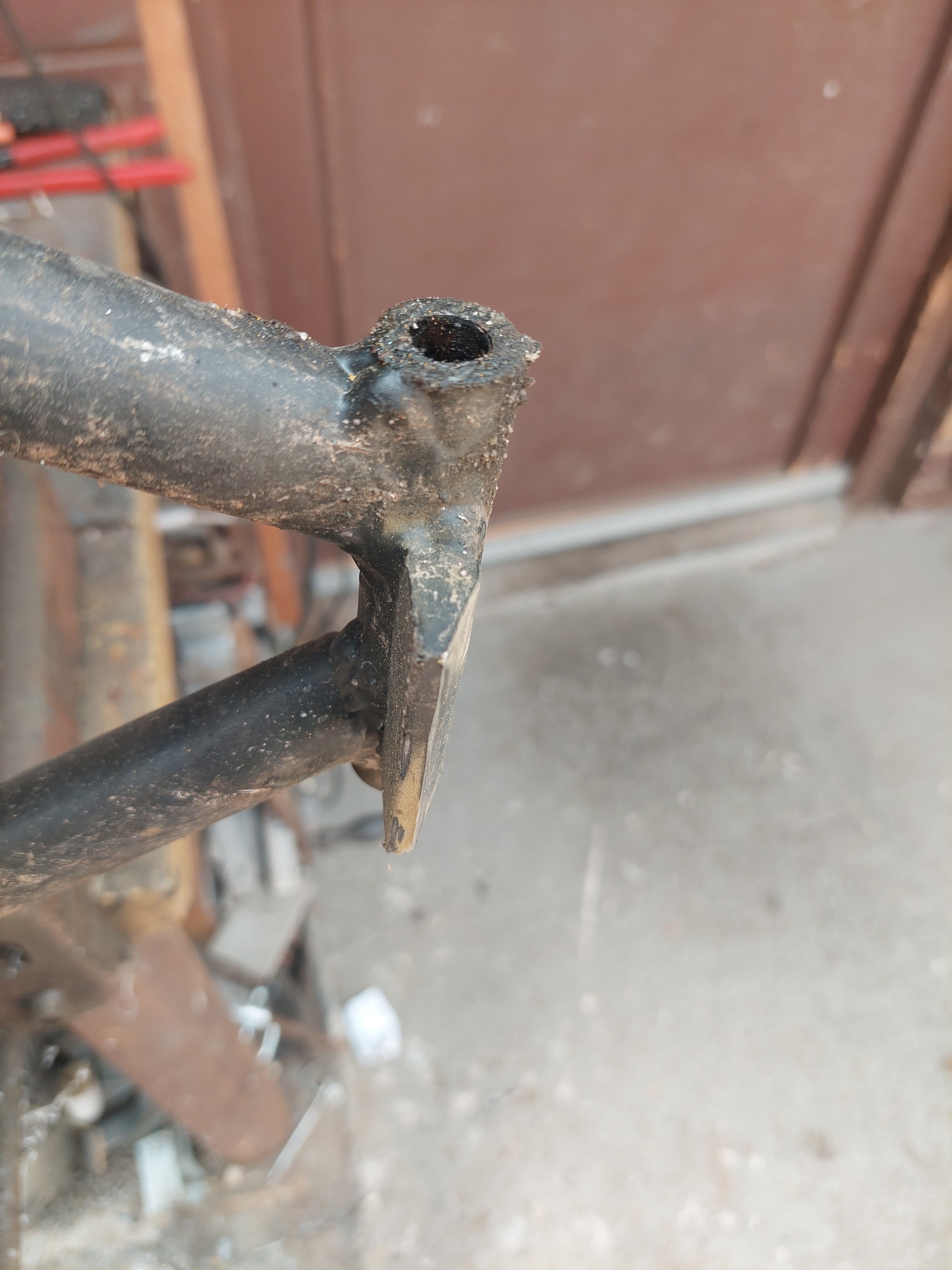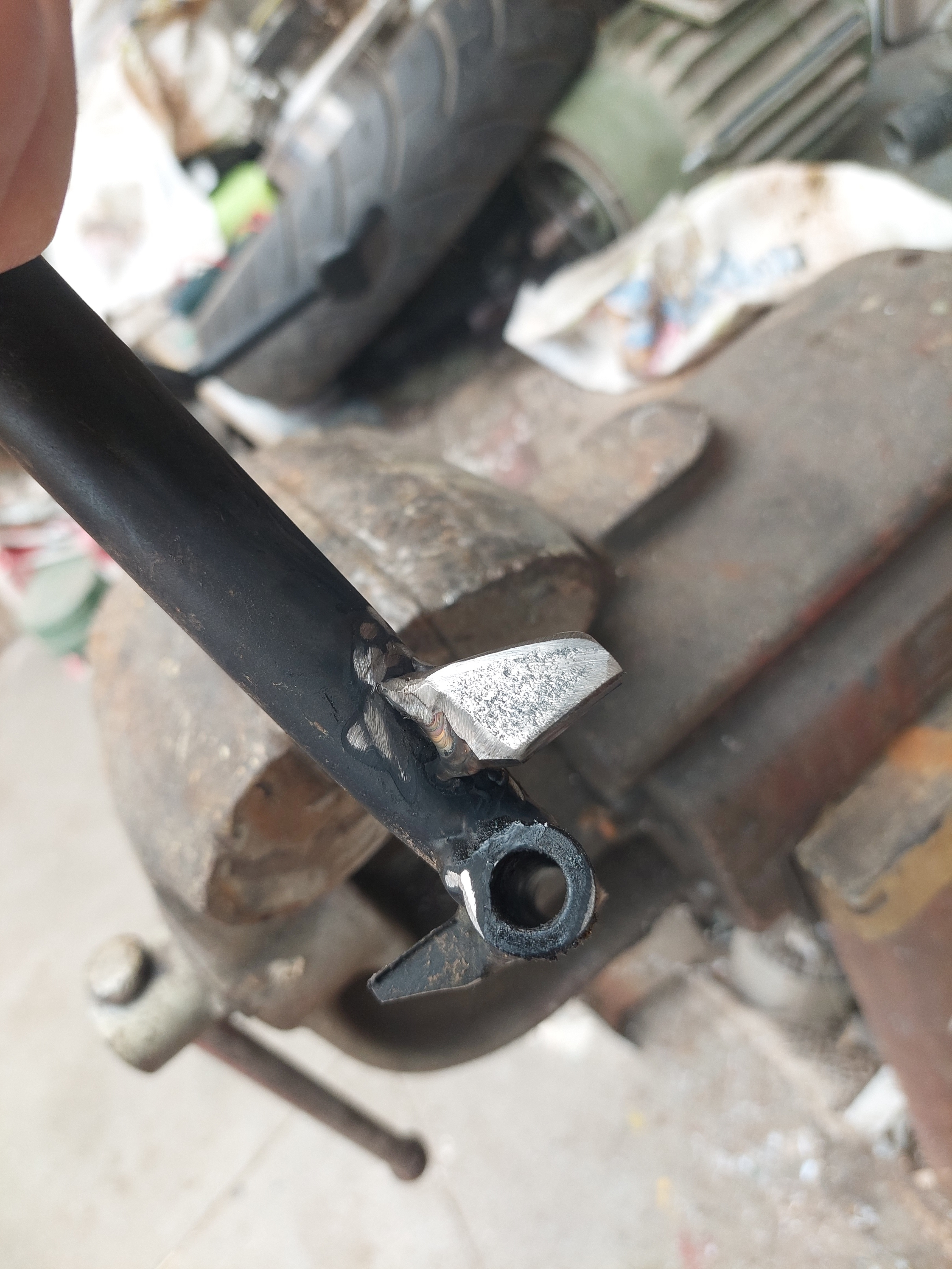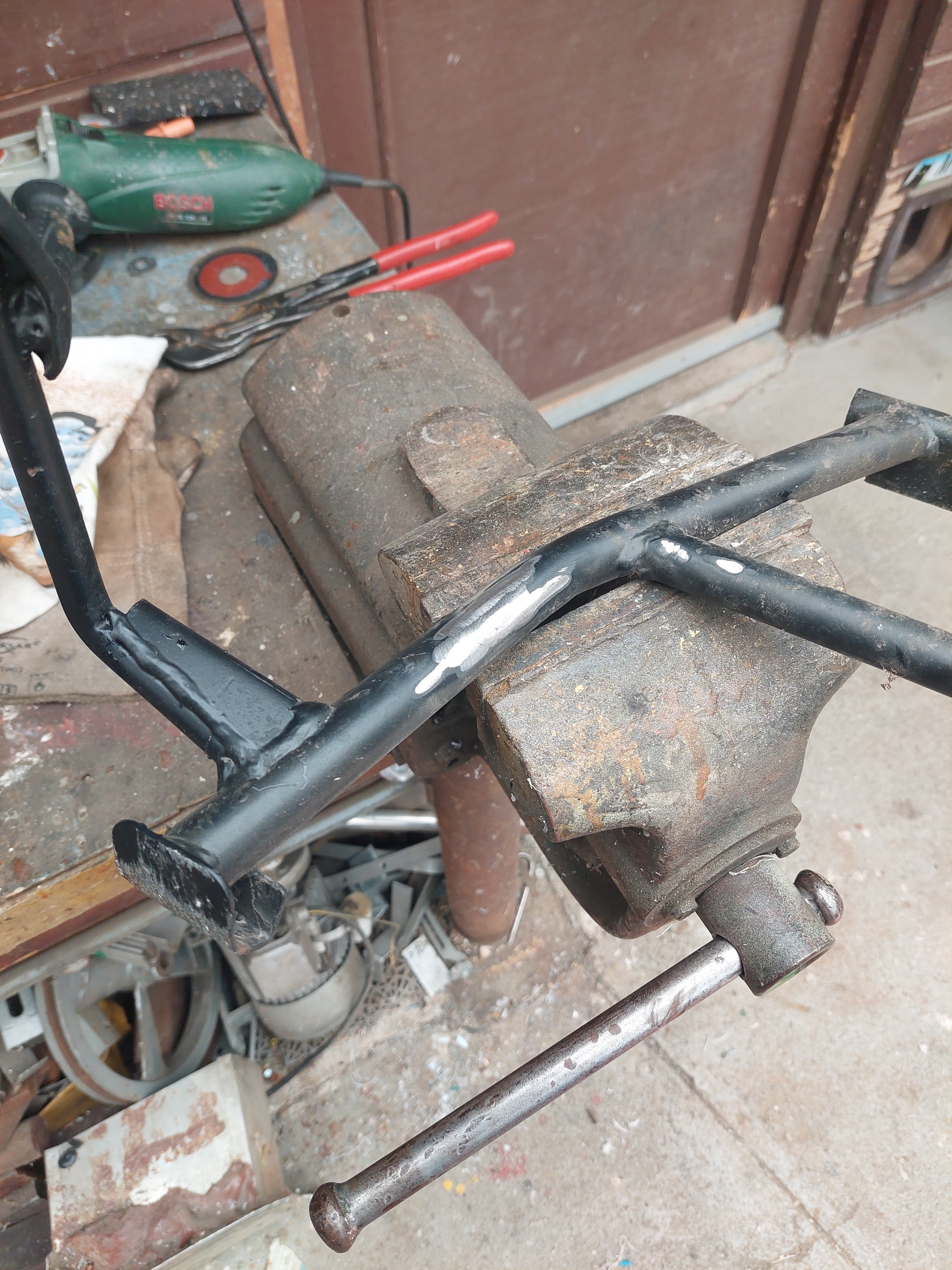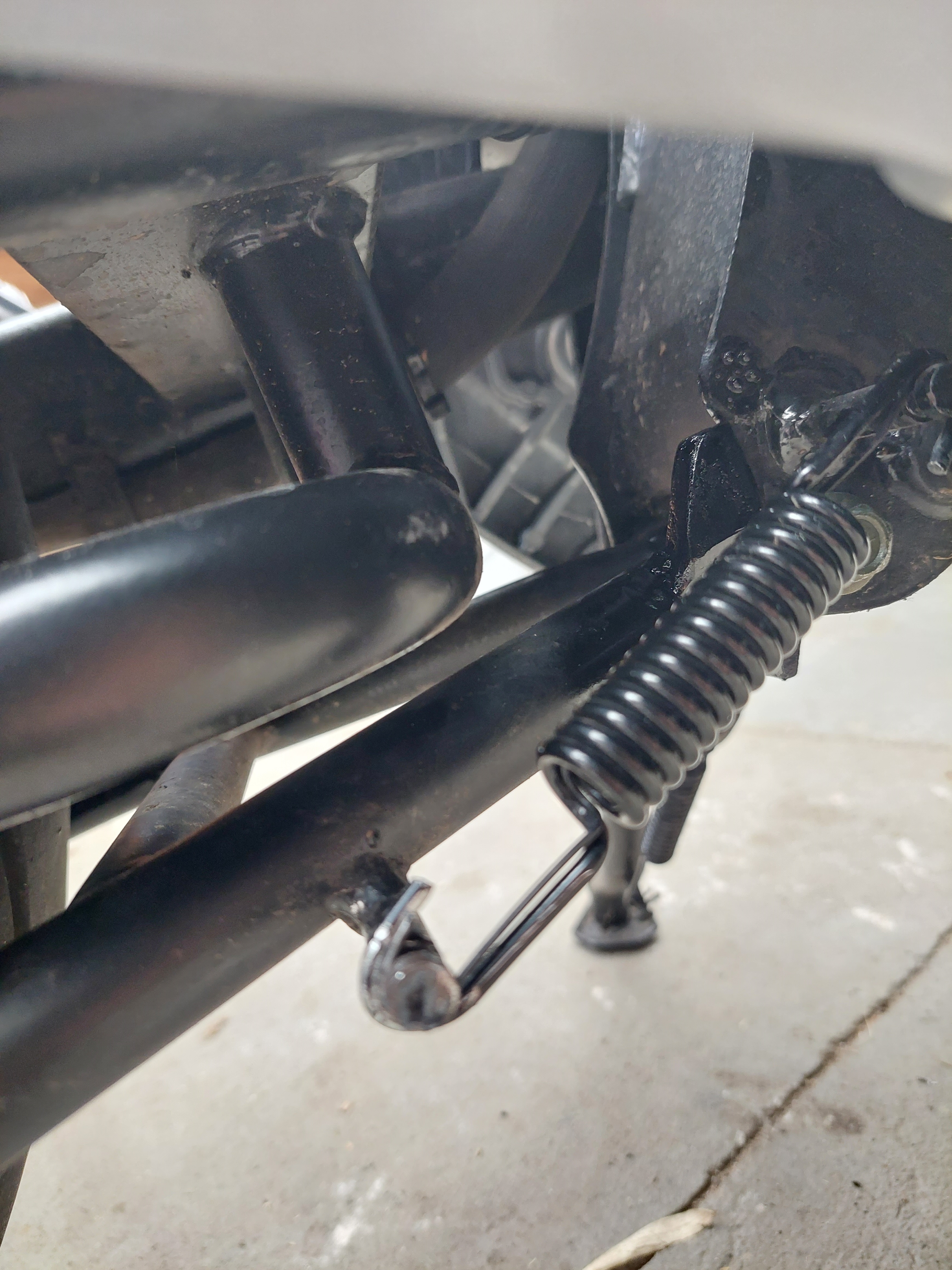 Als Erstes was mir auffiel, war der Hautständer, der absolut unsicher war, wenn man ihn benutzte, die Maschine neigte, nach vor weg zu wollen, daher habe ich in etwas modifiziert, ich zeige ein paar Bilder dazu.