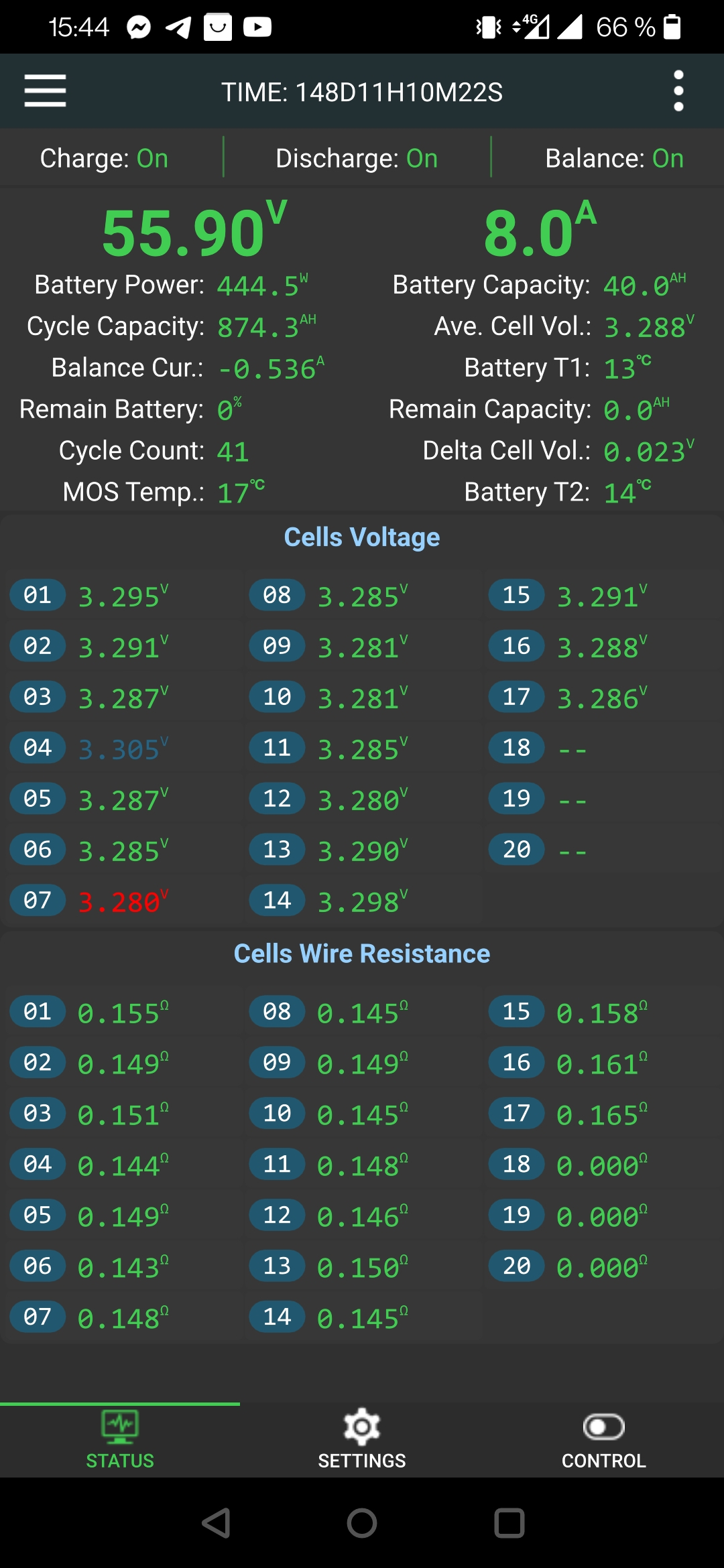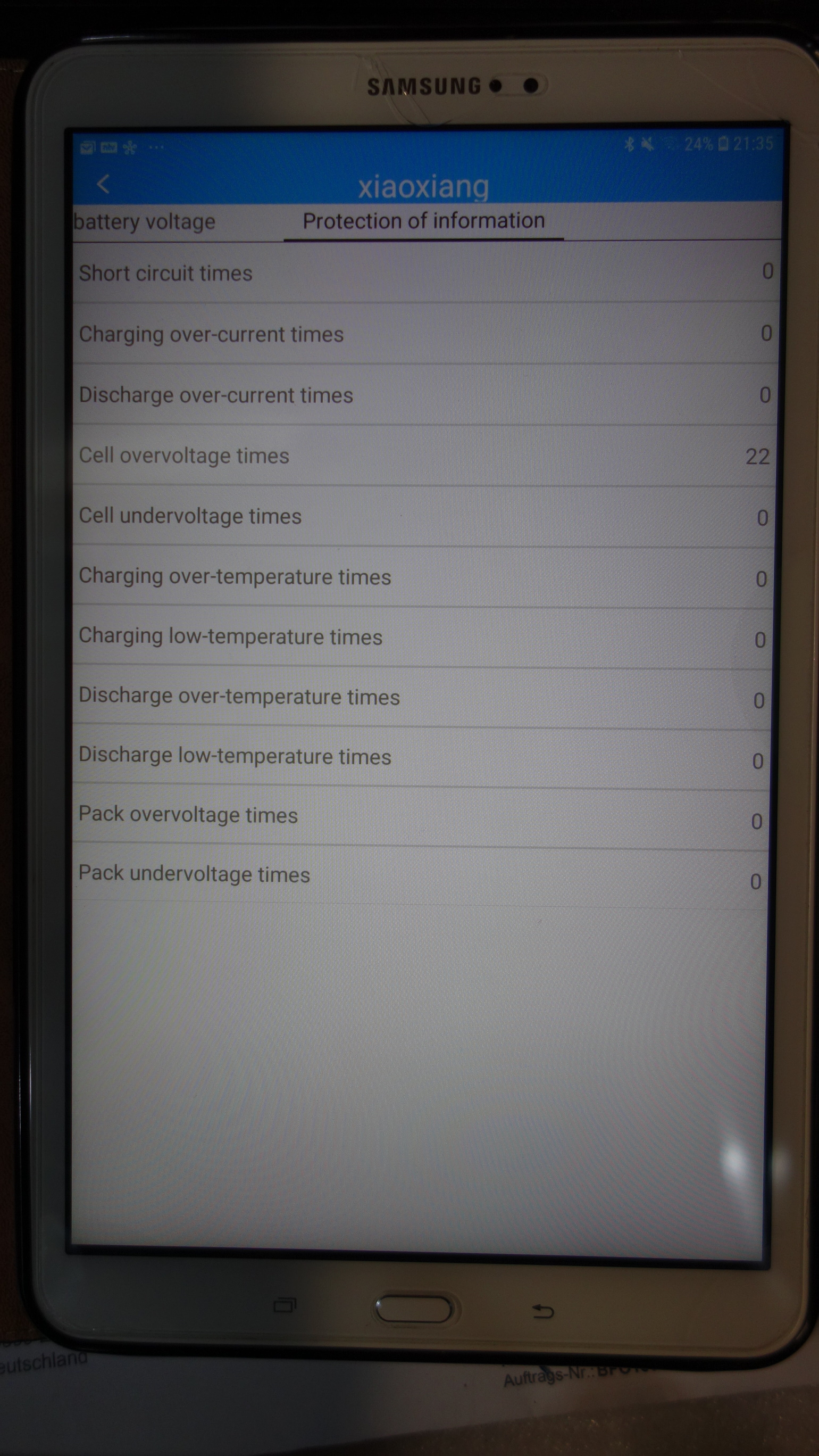 Die 22 Meldungen mit cell over voltage würden mich nicht stören wenn der Wert zwischen 3,55 bis 3,65V wäre.