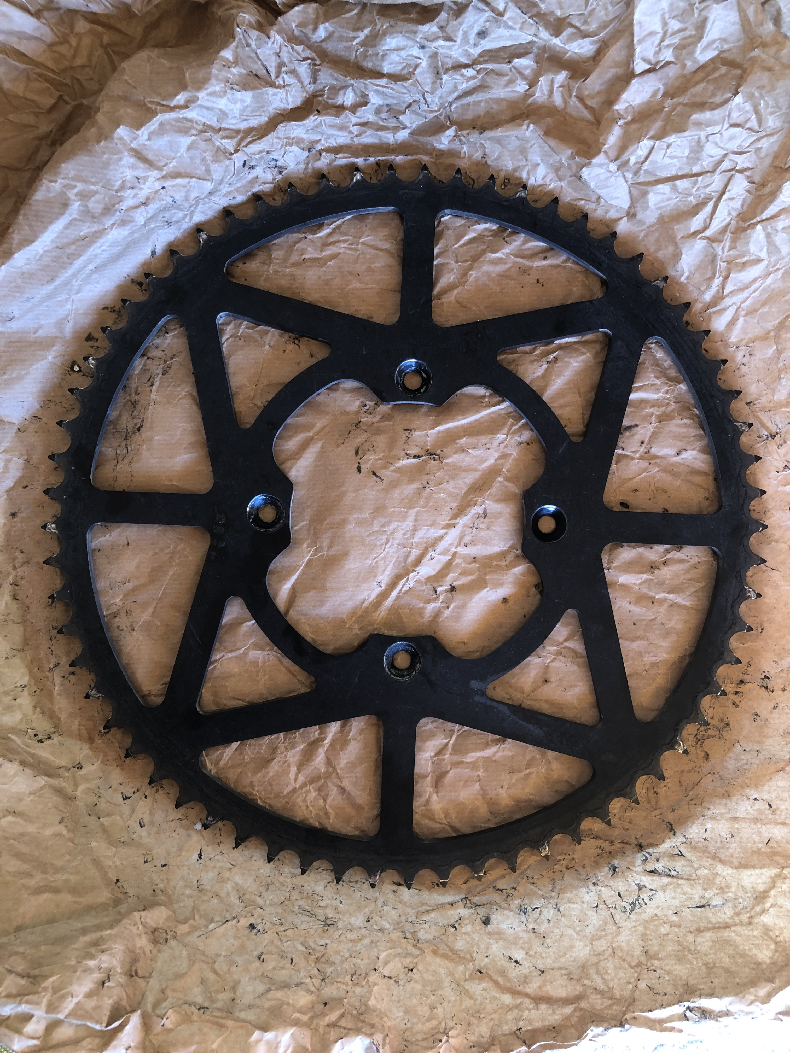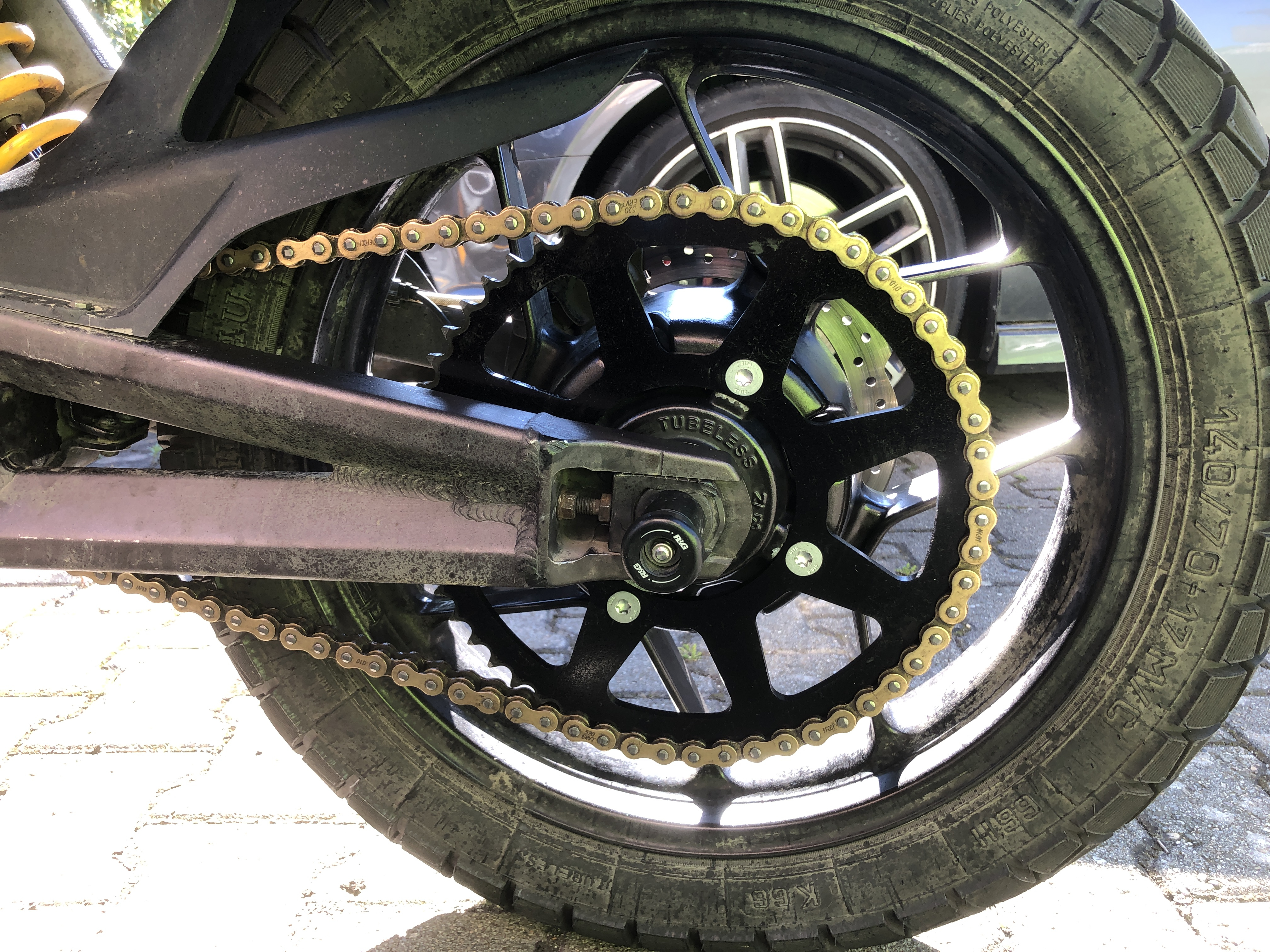 Und eine Sache muss ich noch erwähnen: die 110mm Innendurchmesser des neuen Kettenrads passten erst dann saugend auf das Zentrierkreuz des Hinterrads, nachdem Paul etwas oxidation vom Hinterrad entfernt hatte. Ich fahre ja auch bei Salz auf der Straße...