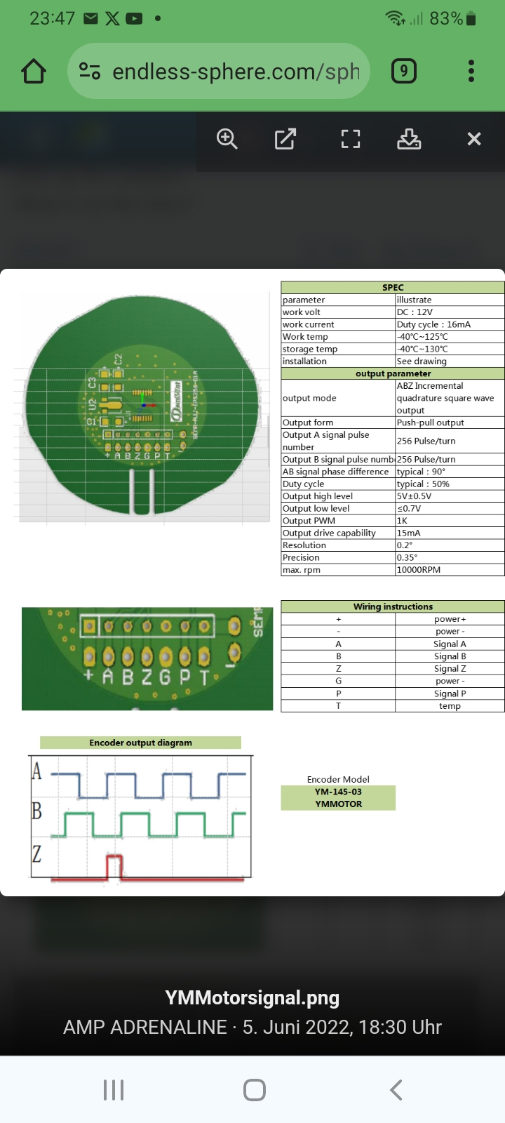 Wenn das der Encoder ist, musst du mal nach ABZ oder ABZ incremental in den Fardriver Einstellungen schauen. Das ist ein Standardverfahren, aber meines Wissens nach nicht so sehr bei den China Motoren verbreitet. Kann dir mangels Fardriver leider nicht weiter helfen.