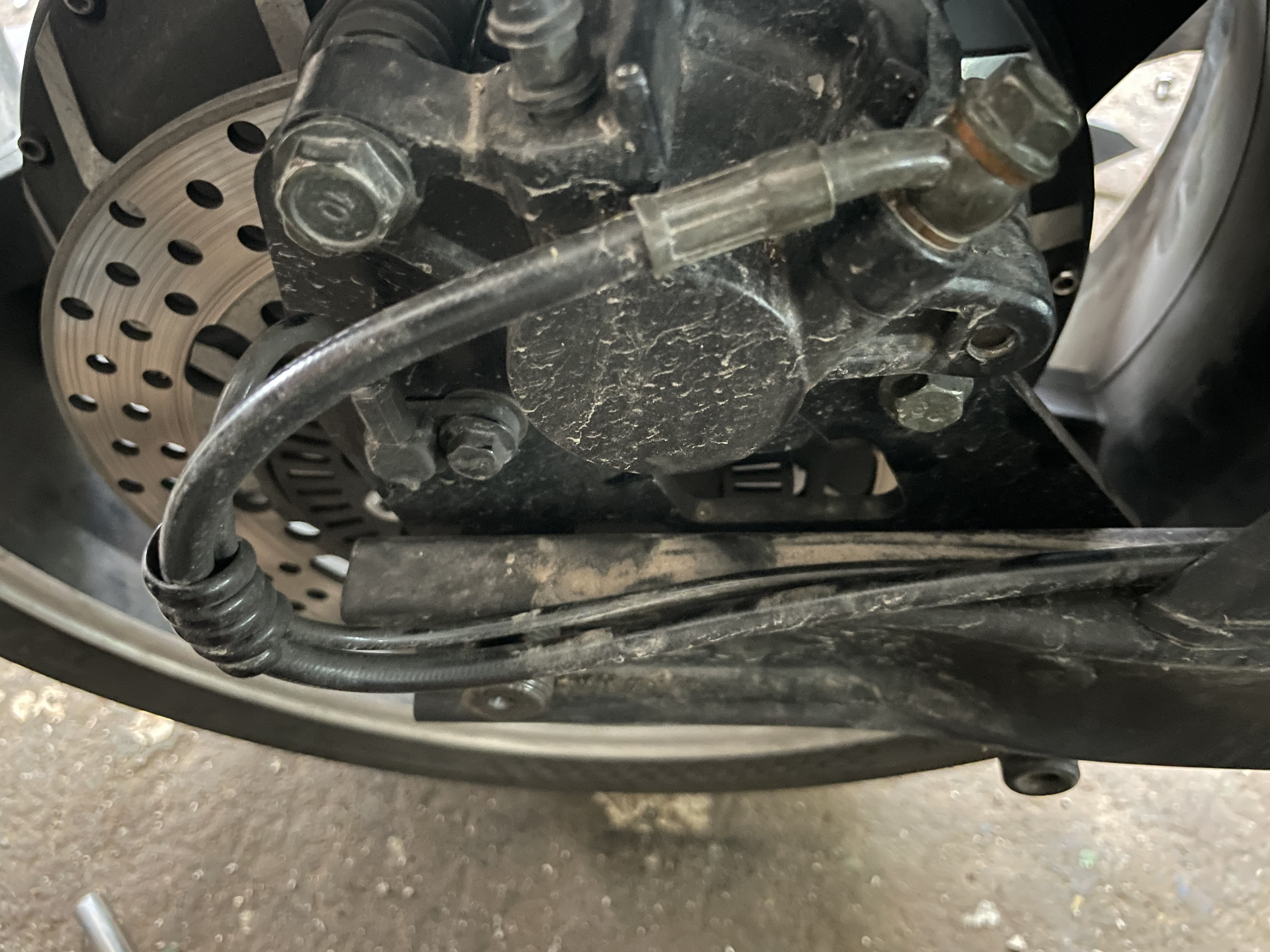 Vorne habe ich sie noch nicht ausgebaut bekommen. Kennt jemand den Bremssattel? Ich denke das ich in der Mitte die Schraube lösen muss. Die ist aber total fest und ich glaube ich habe den Inbussschlüssel fast überdreht. …