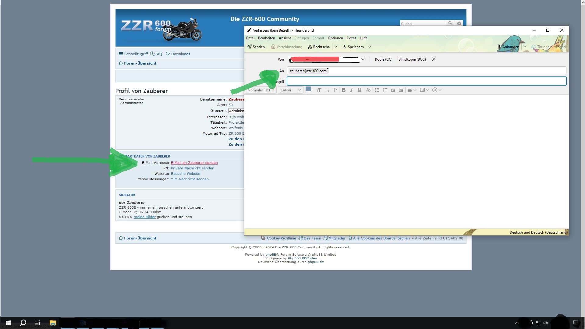 Wie kann ich ein Mitglied dieses Forums, dessen Einstellung unter 1) auf 'Ja' gesetzt ist, per E-Mail kontaktieren?