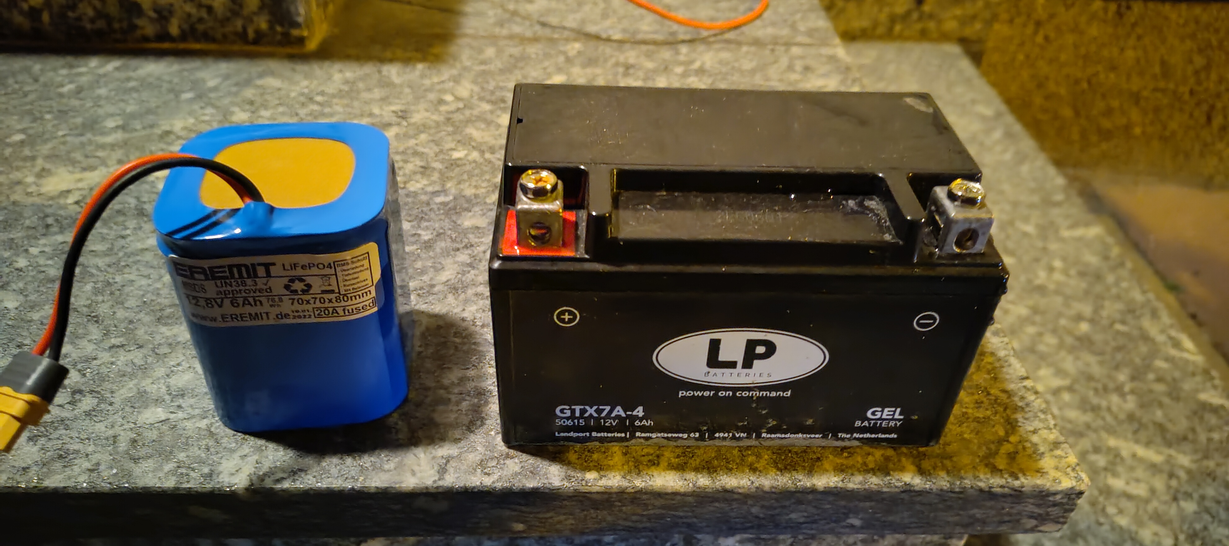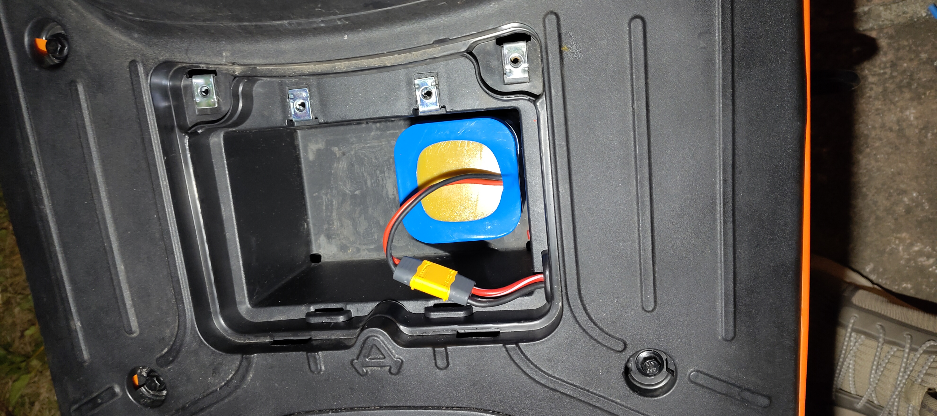 Teste nun meinen kleinen Ermeit LFP mit passiven BMS, dies schaltet laden ab wenn DCDC läuft aber schnell genug wieder an, wenn der abschaltet. Der kommt dann neben die FOC in den Hohlraum, wenn das alles sauber funktioniert. BMS ist die Sicherung, deswegen habe ich diese entfernt. Und jap ich hab natürlich Füllmaterial hinzugefügt, damit der da nicht Disco Pogo macht während der Fahrt.