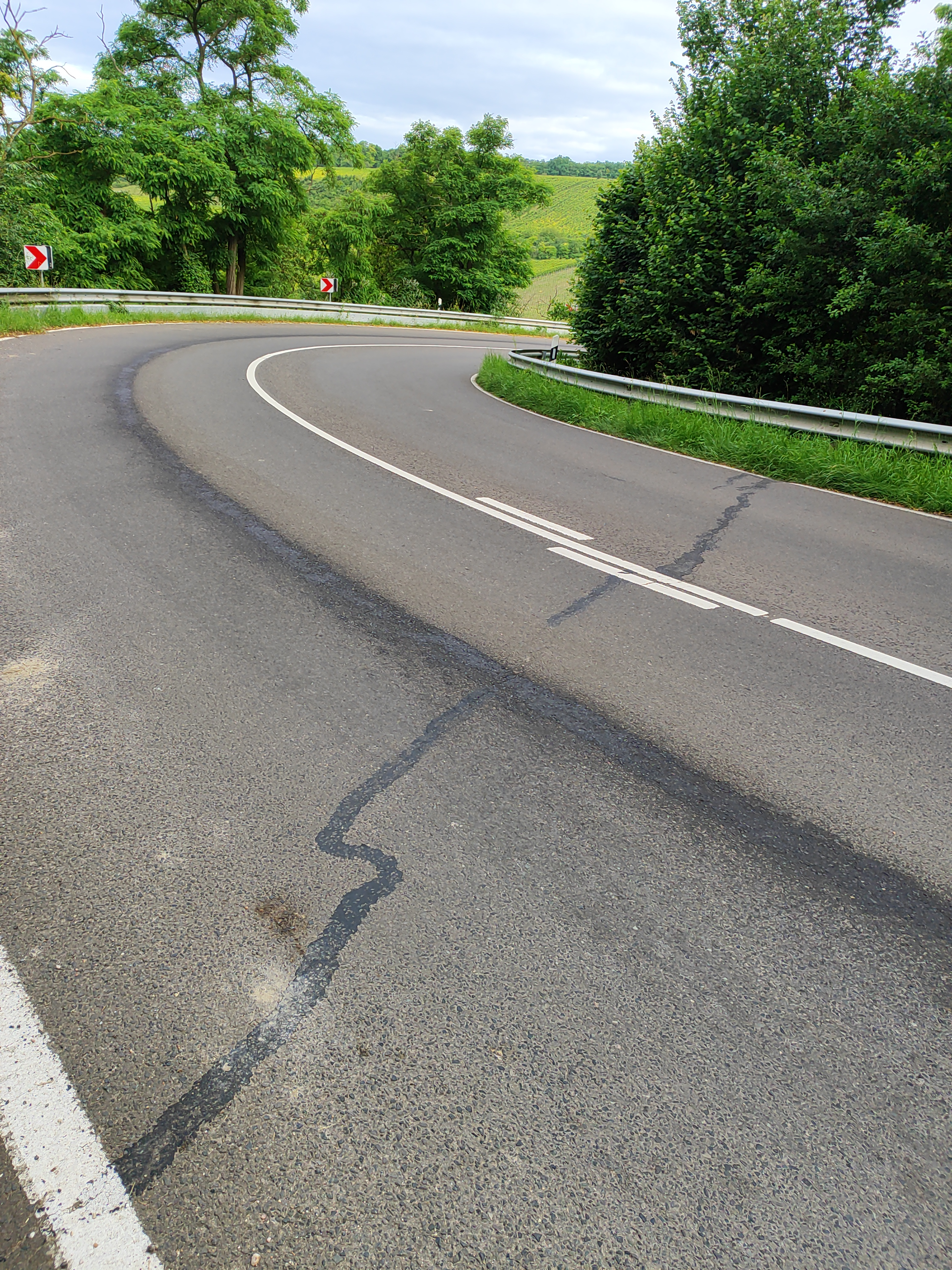 Ja, als Zweiradfahrer ist Straßen lesen absolute Grundvoraussetzung, Lebensversicherung gar. Aber das ist echt eine HEFTIGE Ölspur