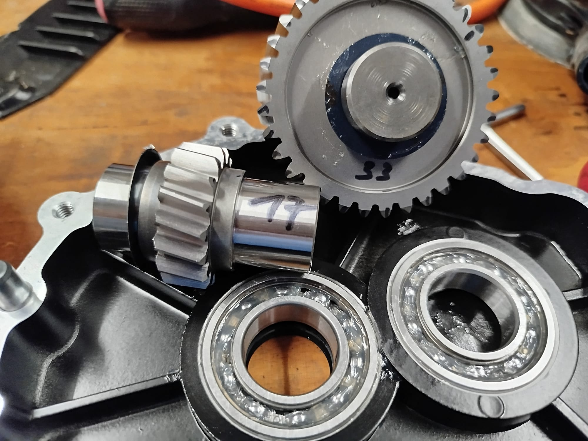 Das neue Getriebe ist eingebaut. Fühlt sich alles sehr straff an und Spielfrei. Beim Schieben hört man wie das Öl von den Zahnrädern verdrängt wird