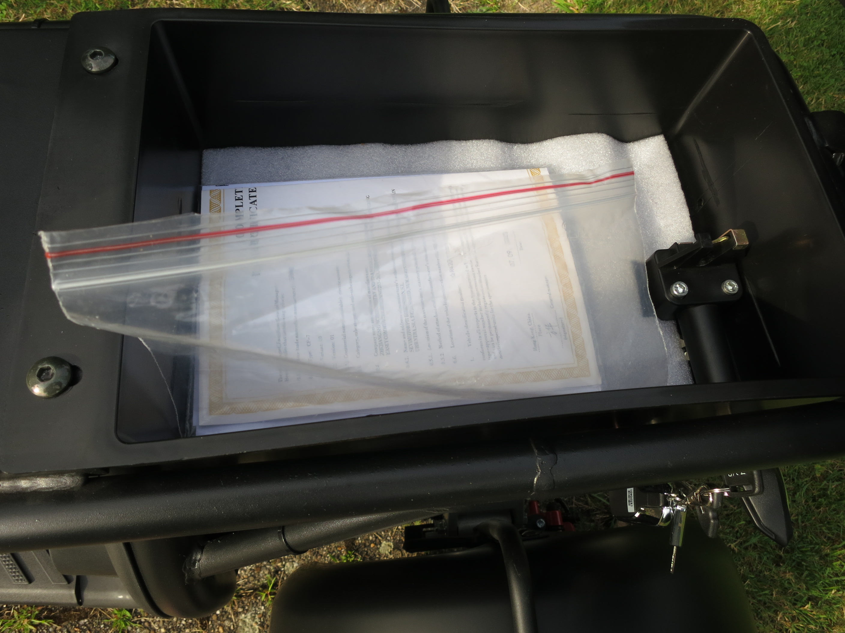 Verschließbare Box unterm Sitz.