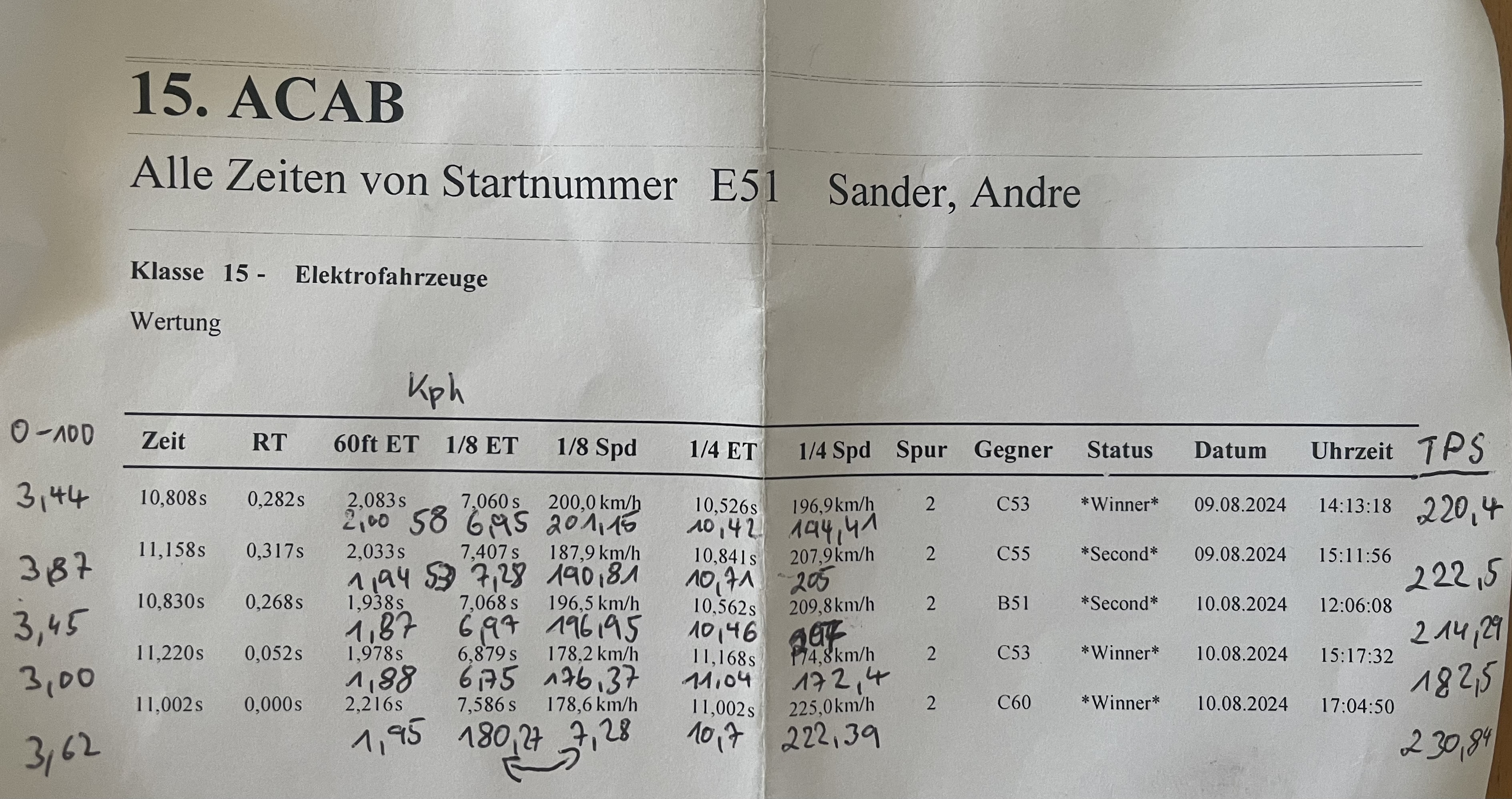 Was ich rausholen kann hängt echt von der Strecke ab. Zeitlich muss da noch mehr gehen und beim Topspeed war ich letztes Jahr schon bei 249 km/h (laut deren Messung bei 254km/h)
