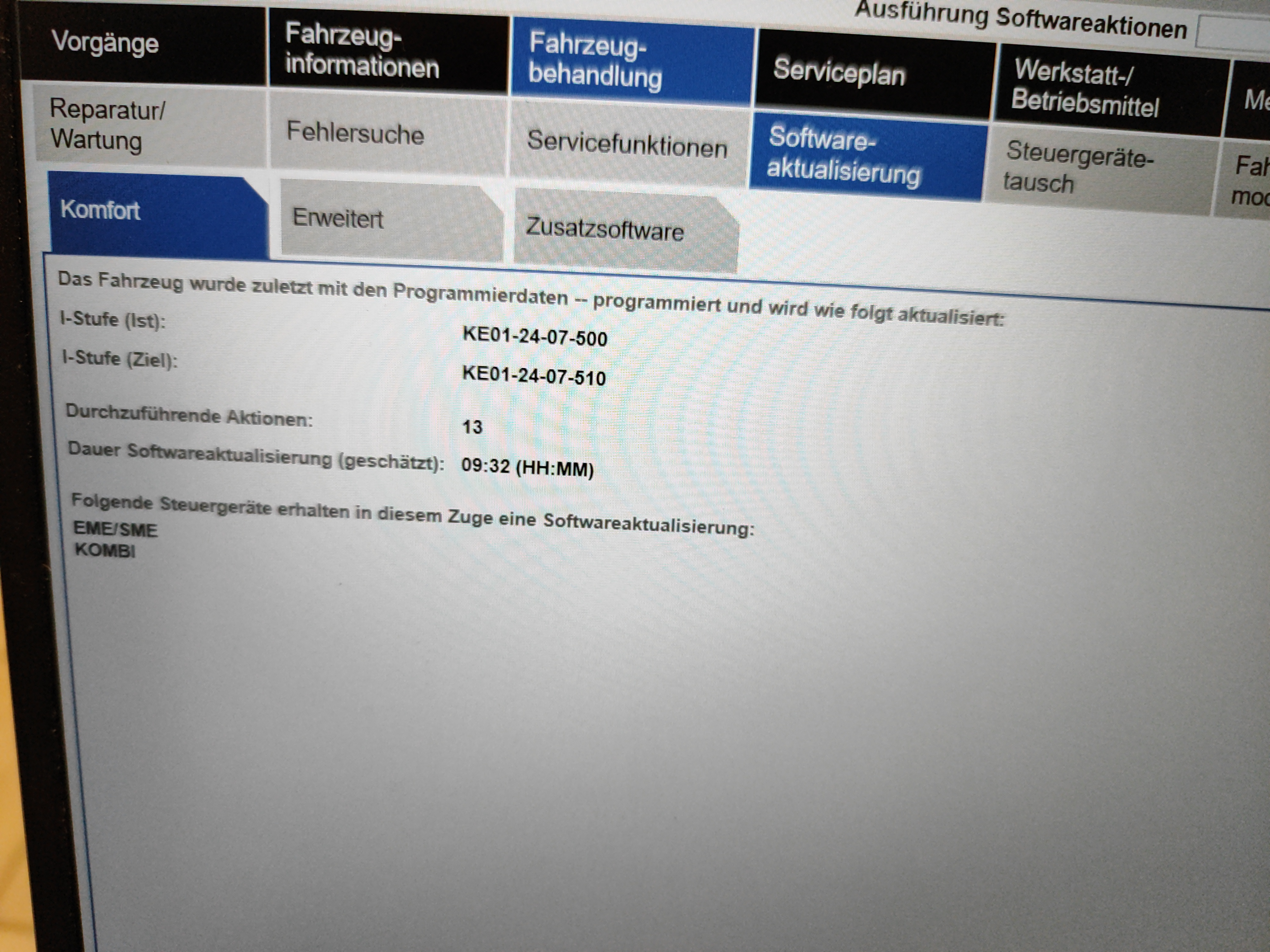Edit sagt: Es werden nur das Kombiinstrument und die E-maschinen Elektronik und das Speichermanagement Elektronik aktualisiert.