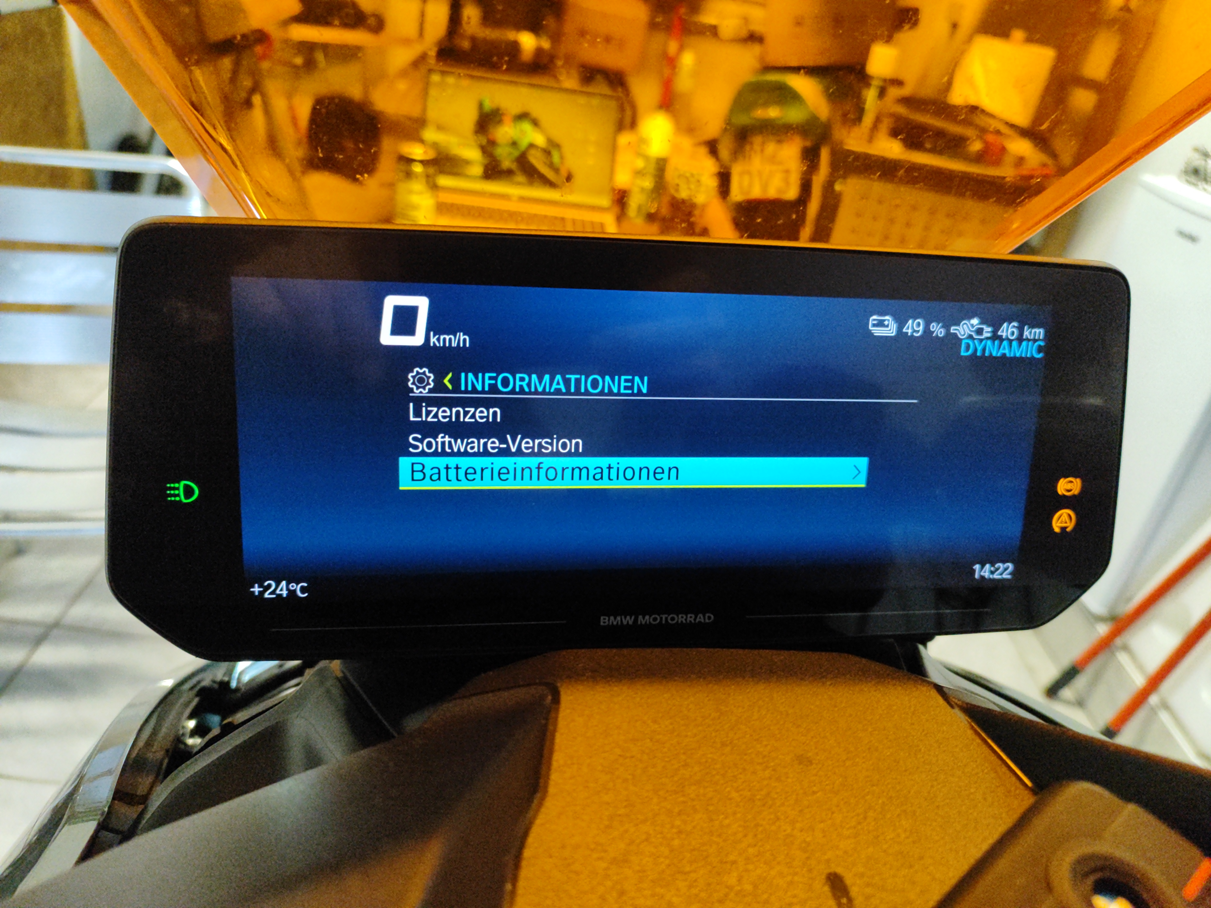 Aber etwas unschöner: Bei Abholung lacht mich sofort der Notruffehler an. Das habe ich auf insgesamt 7000km mit CE 04 vielleicht 3-5x gesehen und meist in der Tiefgarage. Erster Stop (10 Minuten), wieder Notruffehler. An der nächsten Ampel ausgeschaltet. Leider musste ich nach wenigen Sekunden wieder einschalten. Kein Notruffehler, dafür blieben das gelbe Dreieck an und darunter die ABS-Warnleuchte in gelb. Dann ein längerer Stop (1h), wieder Notruffehler, dafür war die ABS-Leuchte dann aus. Noch ein langer Stop, Notruffehler, ABS-Leuchte ok. Und dann nochmal das Gleiche.