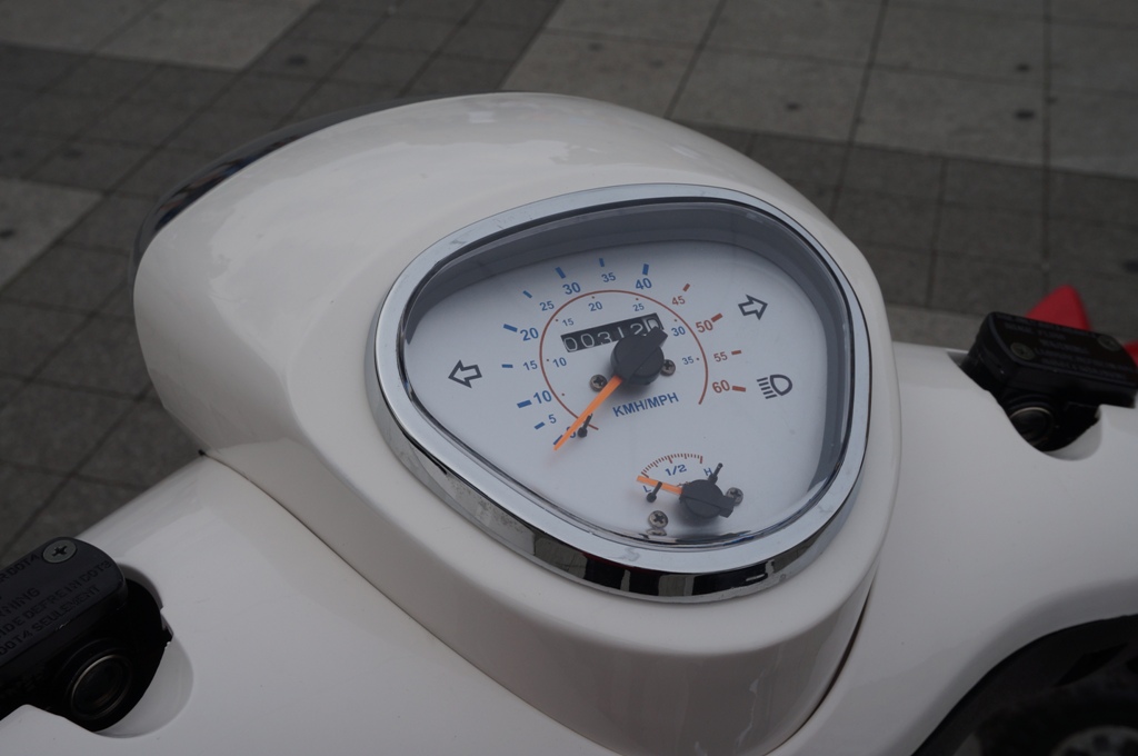 Optisch ist der Roller erst mal hübsch, detailverliebt sollte man aber nicht sein - die Spaltmaße sind schon arg grob (der Roller hatte aber auch wohl einen Sturz und dadurch einen verbogenen Lenker, ein paar Spaltmaße kamen vielleicht auch daher) und der Kunststoff wirkt recht billig. Insbesondere auch das Handschuhfach und die Soziusrasten waren da alles andere als Glanzpunkte. Aber ich denke schon, dass man damit leben kann. Muss man aber wissen, dass man da keinen Peugeot oder Piaggio bekommt (obwohl mein 1996 neu gekaufter TPH125 auch im Vergleich zur Yamaha DT80LC2 davor eher wenig wertig war).