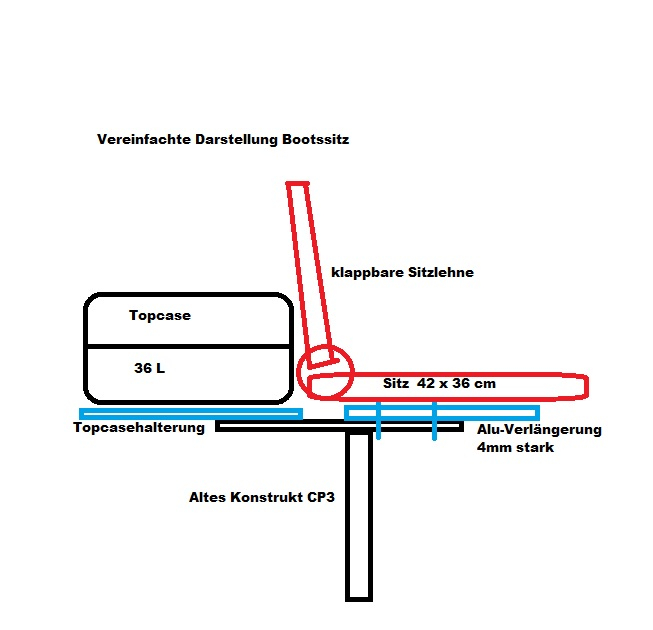 Meine Entscheidung in punkto Sitz fiel auf Bootssitz mit Lehne (klappbar, sonst geht das Topcase nicht mehr auf).
