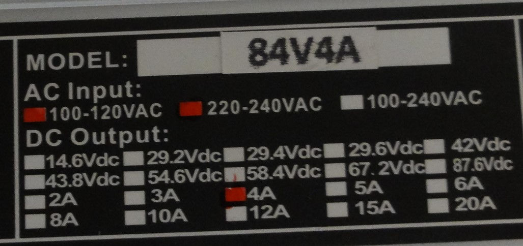 Der Blei-Lader (für 6x 12 Volt-Blöcke) lädt bis Ladeschluss bei 87 Volt mit vollem Ladestrom 9 Ampere und regelt erst dann herunter auf den Strom der bei 83 Volt noch fließt.